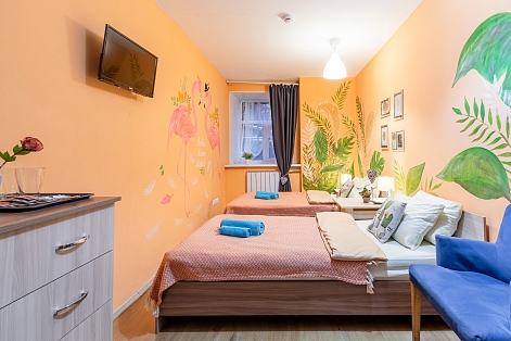 Отель разместился в шестиэтажном историческом здании, возвышающемся на небольшой тихой улице среди шумных магистралей Петербурга. Небольшой жилой фонд отеля включает в себя только 9 номеров, поэтому в отеле всегда спокойная и камерная атмосфера. Гости могут выбрать бюджетные варианты с санузлом на этаже или разместиться в стандартных номерах с индивидуальной ванной комнатой. Во всех номерах есть телевизор. Также везде на территории отеля хорошее покрытие wi-fi.В общем доступе гостей имеется микроволновая печь, посуда, холодильник и стиральная машина.