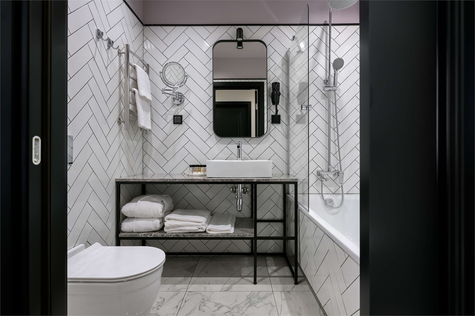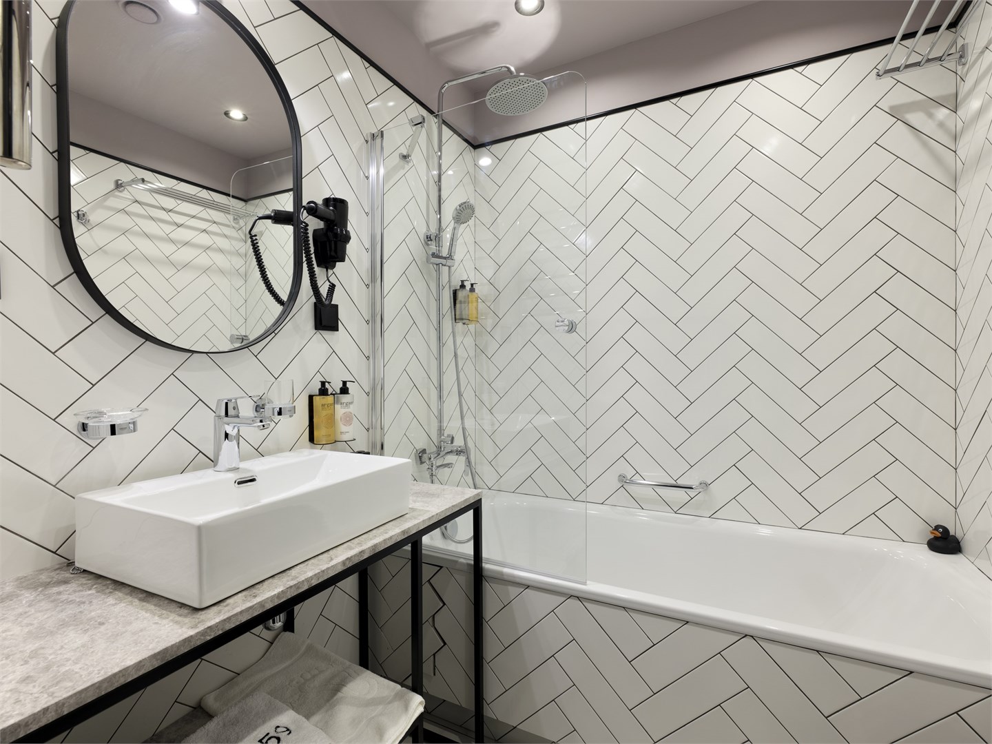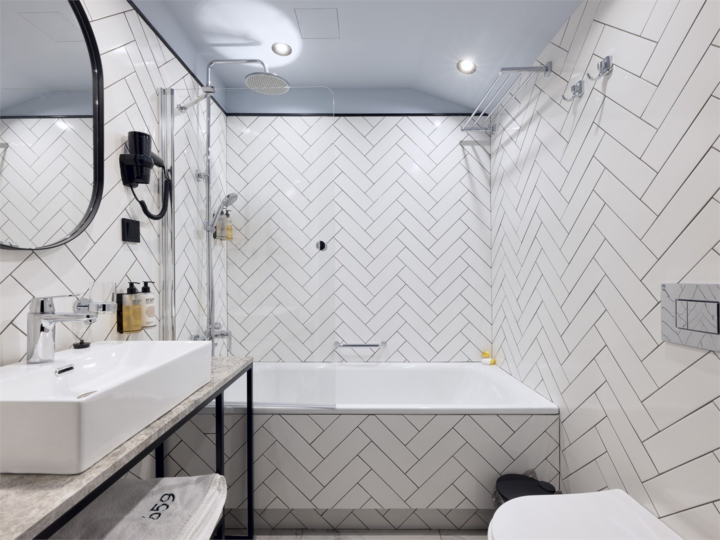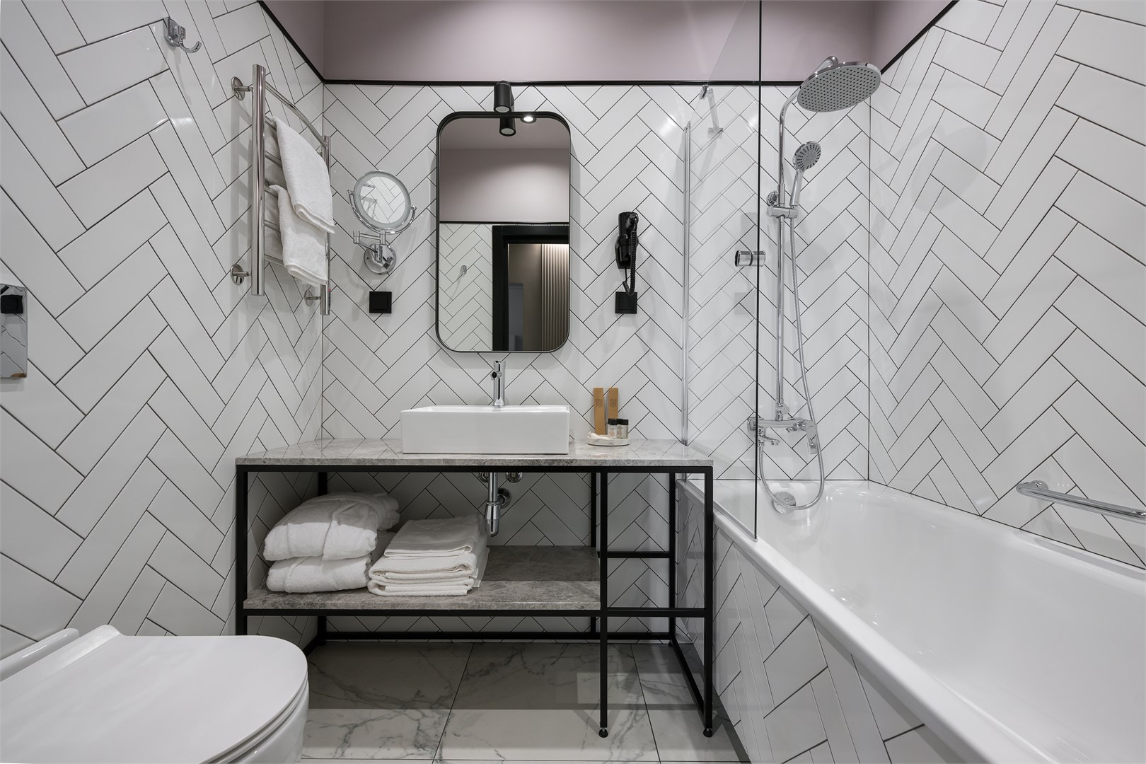 Санузел: с ванной, туалетные принадлежности, фен, халат
