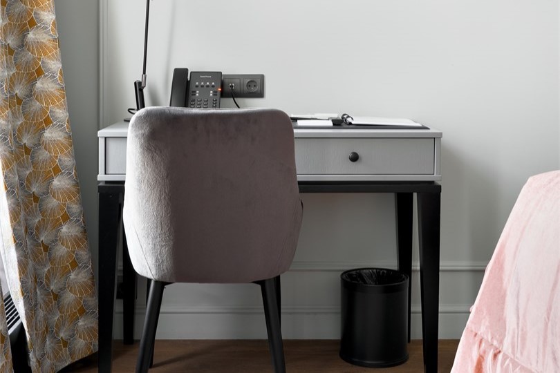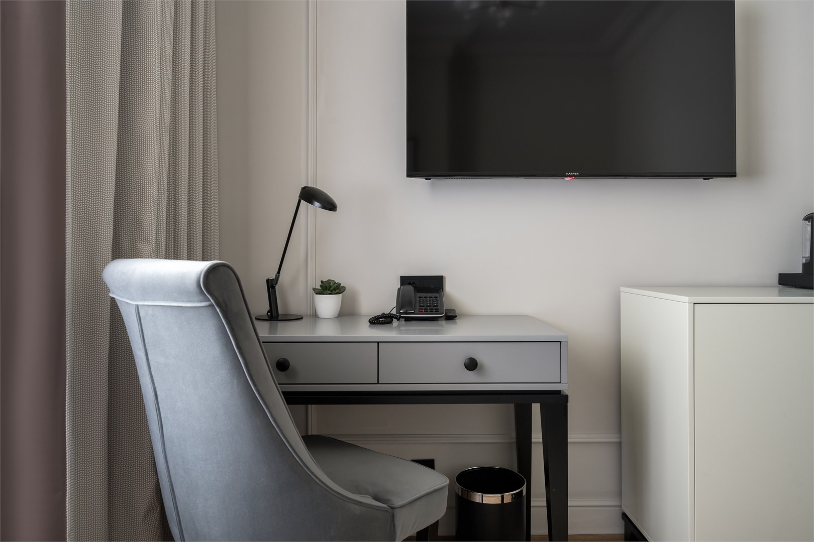 В номере: вешалка, зеркало, кровать полутороспальная, стол, стул, шкаф, гладильная доска, кондиционер, кофемашина, мини-холодильник, сушилка для белья, телевизор, телефон, утюг, чайный набор посуды, электрочайник