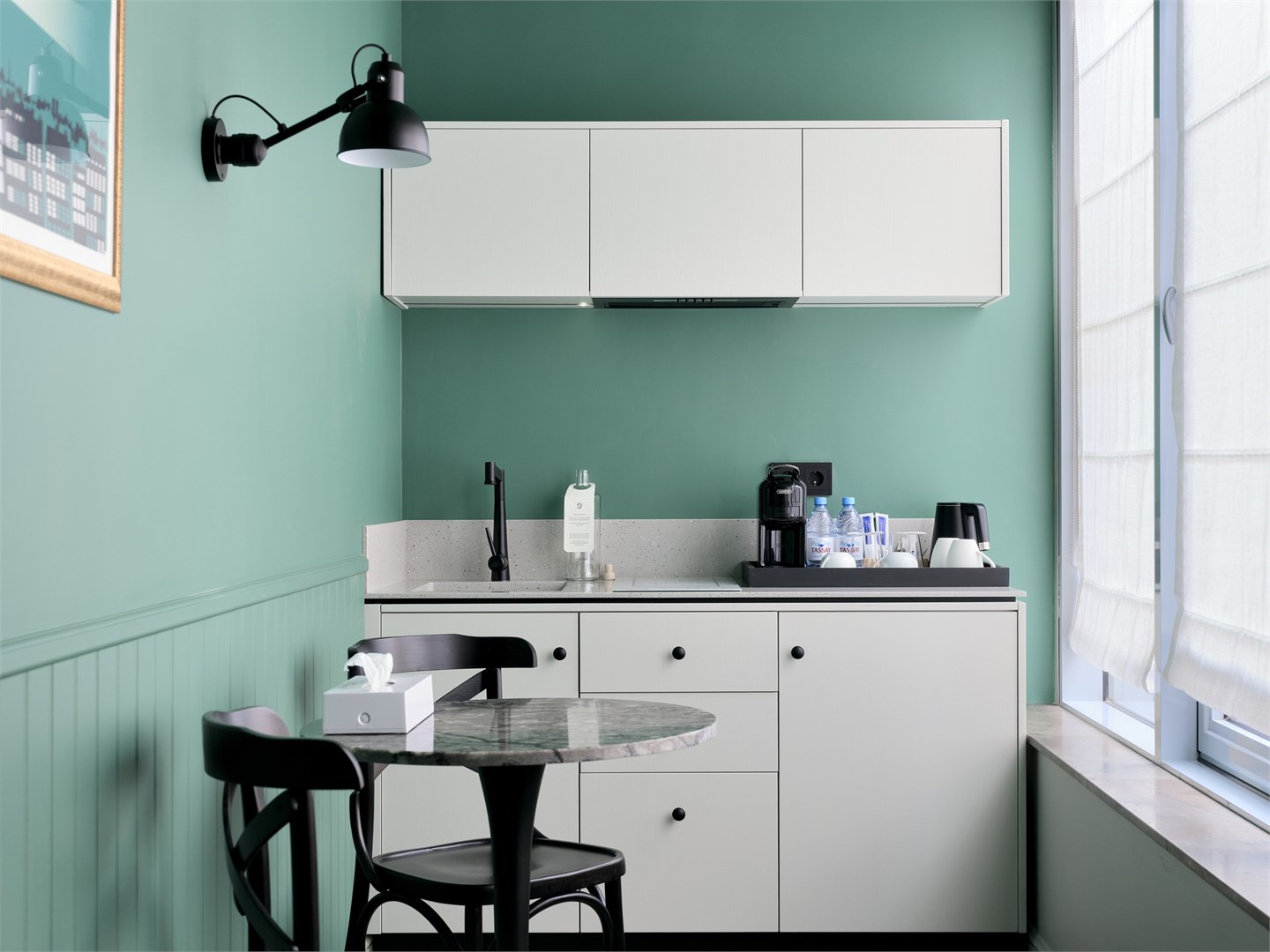 В номере: вешалка, зеркало, кресло, кровати полутороспальные, стол, стул, шкаф, гладильная доска, кондиционер, кофемашина, мини-холодильник, сушилка для белья, телевизор, телефон, утюг, электрочайник