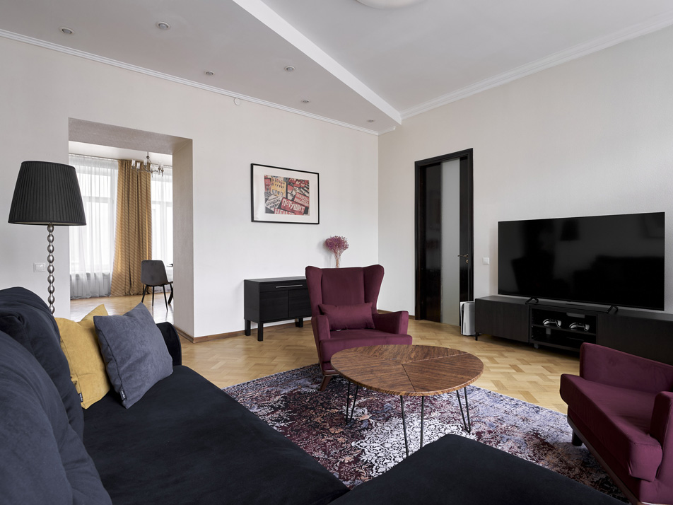 Очутитесь в самом сердце Санкт-Петербурга, где историческая архитектура гармонично сочетается с современными удобствами. В непосредственной близости – оживленный Невский проспект, окруженный историческими памятниками и культурными достопримечательностями.Эти апартаменты – прекрасный выбор для тех, кто ценит простор и комфортабельность. Обширные комнаты с высокими потолками дарят ощущение свободы и простора. Кухня, оснащенная современной бытовой техникой, позволяет с удовольствием готовить любимые блюда, наслаждаясь городскими пейзажами. В комфортабельной гостиной размещена зона отдыха с телевизором сверхвысокой четкости.Для удобства проживающих предусмотрено все необходимое: две ванные комнаты, посудомоечная машина, утюг, стиральная машина. Незабываемые впечатления от досуга или деловой поездки гарантированы.