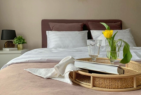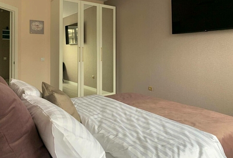 Поездом до ж/д вокзала Московский (г. Санкт-Петербург), далее на рейсовом автобусе №26 до остановки «ул. Тосина», далее пройти 1,1 км до апартаментов.