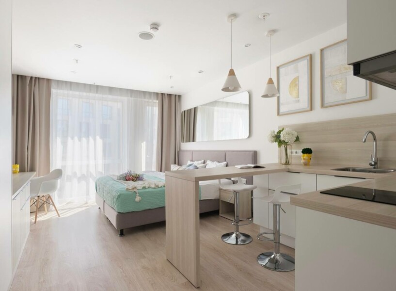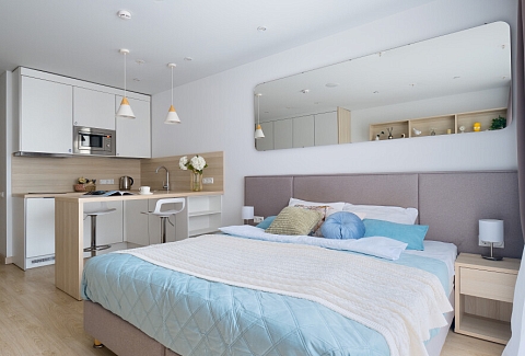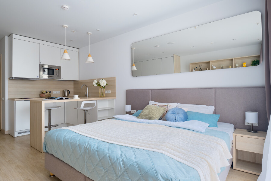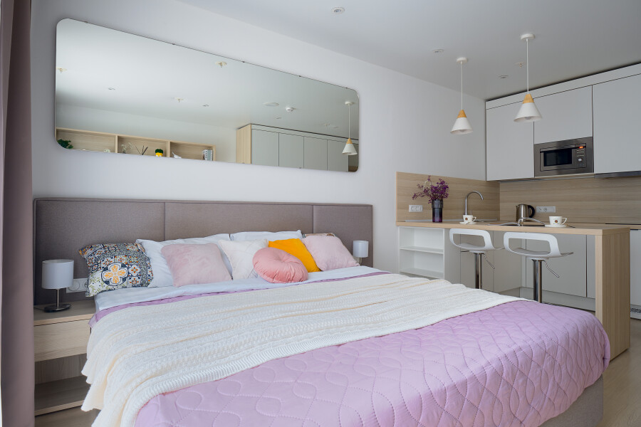 Внутри гостей встречает уютная, продуманная до мелочей атмосфера. Здесь ценят простые, но важные вещи: всегда свежее белье, пушистые полотенца и возможность в любой момент приготовить что-то своё на компактной кухне с варочной панелью и микроволновой печью. Это место для путешественников, которые, оказавшись в самом сердце Северной столицы, хотят чувствовать себя как дома.