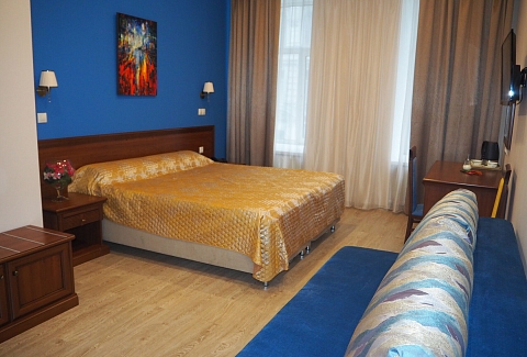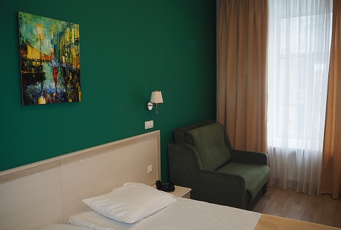 До основных достопримечательностей северной столицы — Эрмитажа, Русского музея, Исаакиевского и Казанского соборов можно доехать всего за 10—15 минут. Отель разместился в пятиэтажном здании на Невском проспекте. В распоряжении гостей двухместные номера с удобствами. В комнатах классический интерьер, выдержанный в приятной цветовой гамме с добавлением ярких, но уместных акцентов. Везде есть телевизор, беспроводной интернет, в ванной подготовлены наборы косметических принадлежностей, из окон открываются красивые виды на город, а номера-студии оснащены мини-кухней.