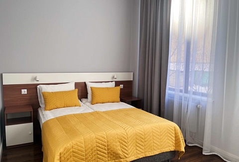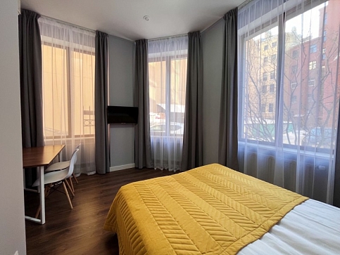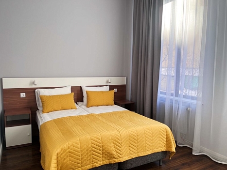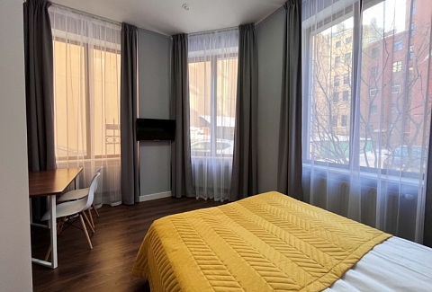 Гостиница занимает часть многоэтажного жилого дома. 20 стильных номеров оформлены в теплых тонах и дополнены яркими акцентными деталями и большими окнами, благодаря чему внутри много света. Комнаты укомплектованы одно- или двуспальными кроватями, всей необходимой мебелью и техникой, собственными санузлами. Есть доступ к Wi-Fi. Позавтракать постояльцы могут на первом этаже отеля.