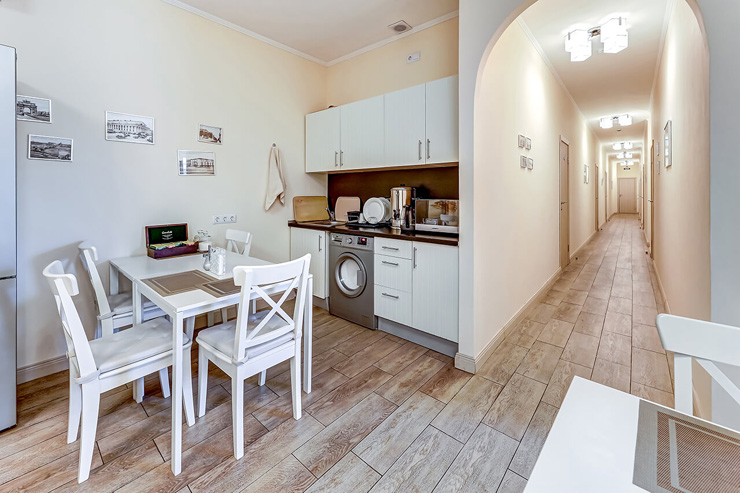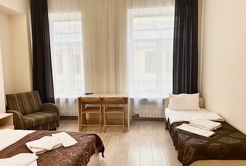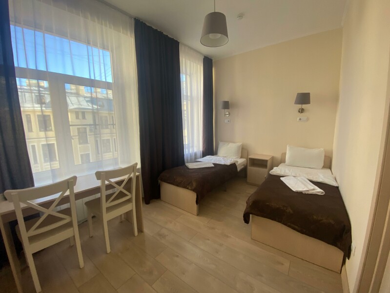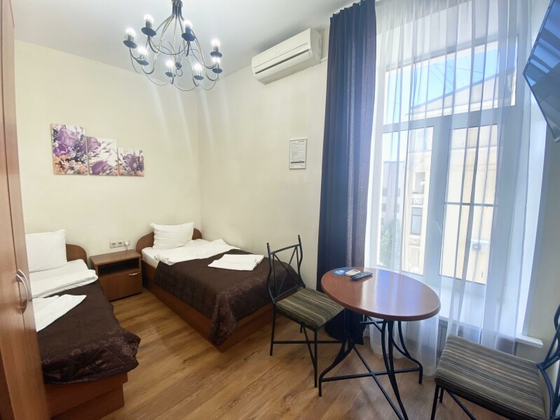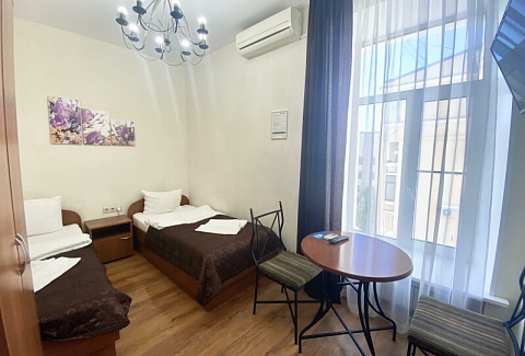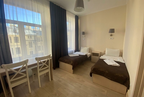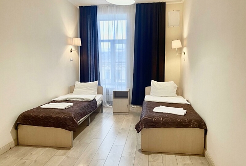 Гостиница занимает часть исторического здания — бывшего доходного дома купца Круглова. Здесь 39 одно- и двухместных номеров различных категорий. Комнаты оформлены преимущественно в бежево-кофейных тонах, оснащены всей необходимой мебелью и техникой, санузлами. Можно подключиться к Wi-Fi.В отеле оборудована общая кухня-столовая, где для постояльцев каждое утро накрывают завтрак. Есть возможность воспользоваться утюгом с отпаривателем и стиральной машиной.