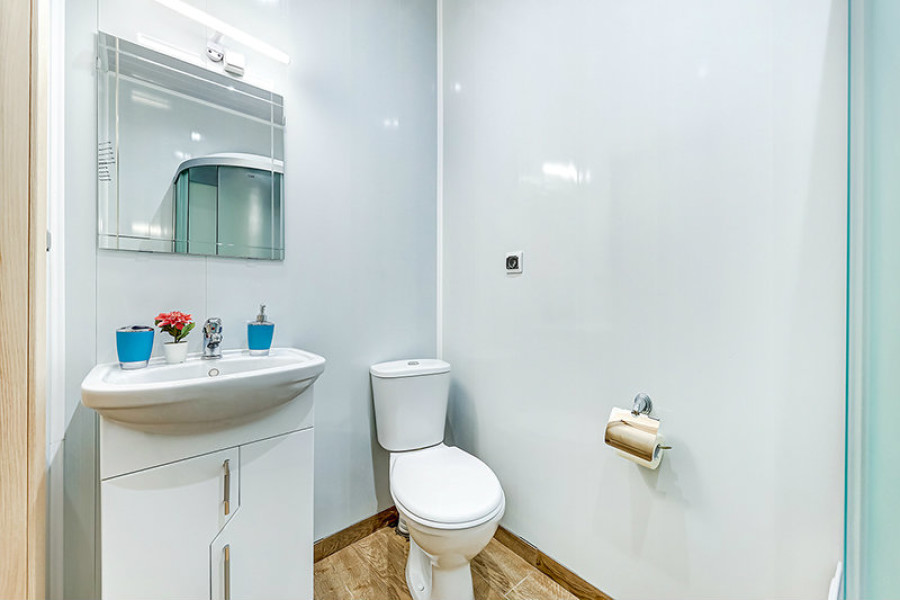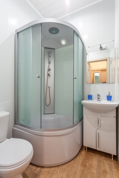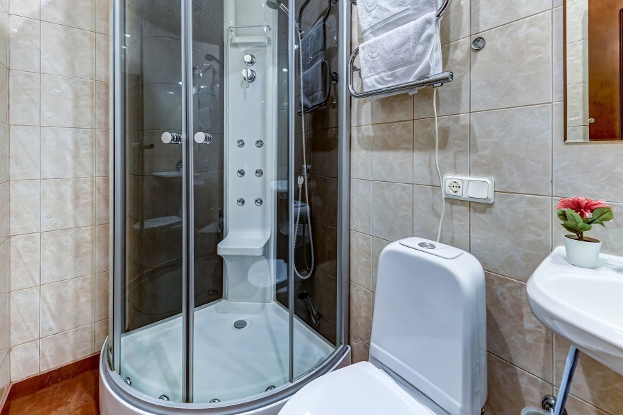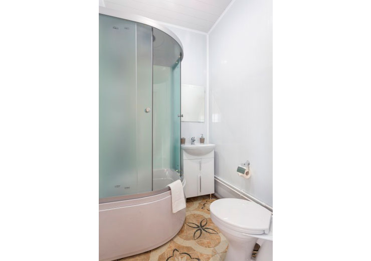 Санузел: с душевой кабиной, туалетные принадлежности, фен