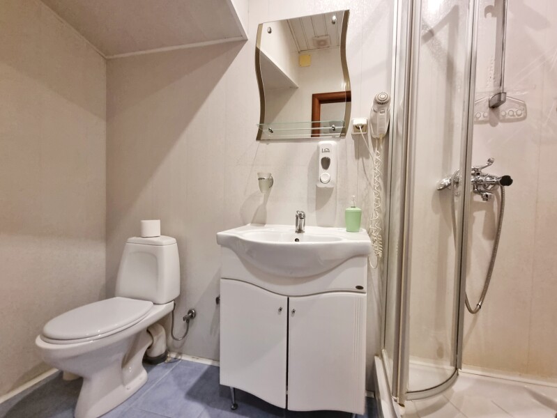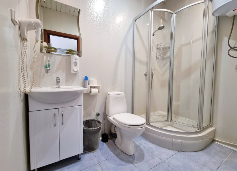 Санузел: с душевой кабиной, туалетные принадлежности, фен