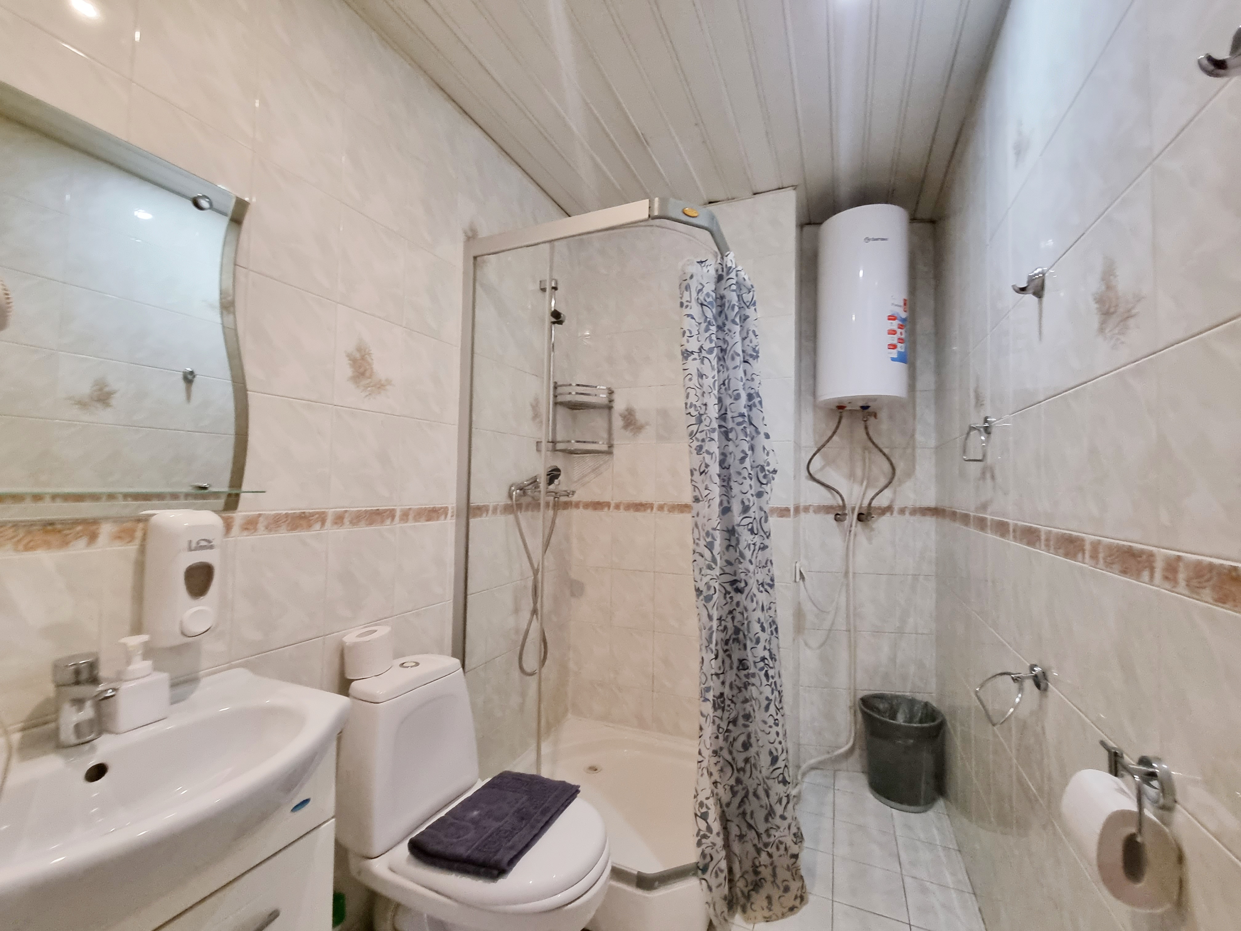 Санузел: с душем, туалетные принадлежности, фен