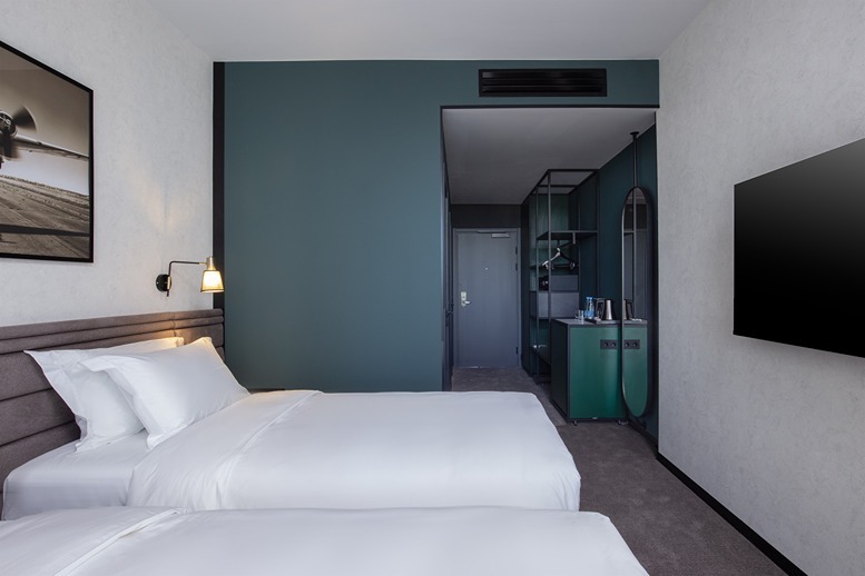 В номере: вешалка, зеркало, кровати односпальные, прикроватные тумбочки, стол, стул, шкаф, гладильная доска, кондиционер, мини-холодильник, сейф, телевизор, телефон, утюг, чайная станция