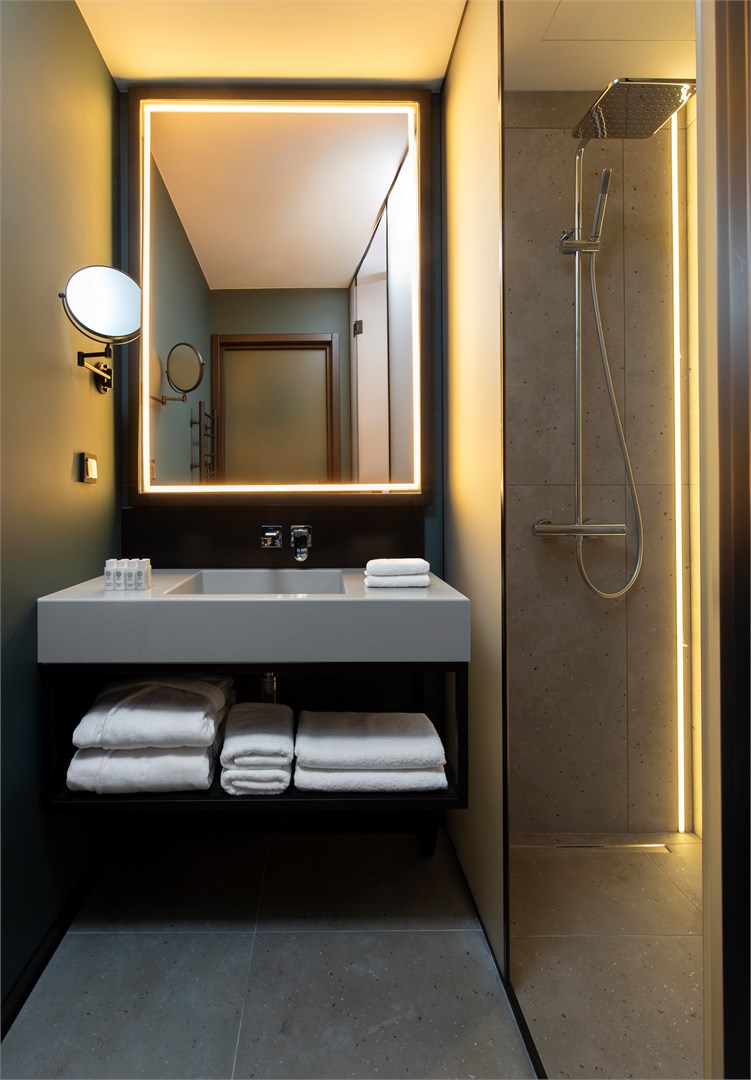 Санузел: с ванной и душевой кабиной, тапочки, туалетные принадлежности, фен, халат
