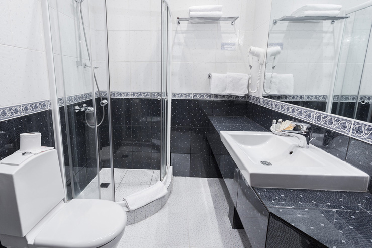 Санузел: с душем, туалетные принадлежности, фен