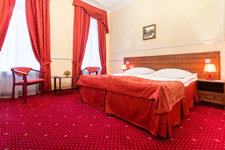 Жилой фонд состоит из 6 стандартных и комфортных номеров. Обе категории оформлены в классическом стиле с преобладанием красного цвета и полностью подготовлены к заселению гостей. Все комнаты располагают удобными спальными местами, отдельной ванной, доступом к Wi-Fi. В общем доступе обустроена небольшая библиотека.