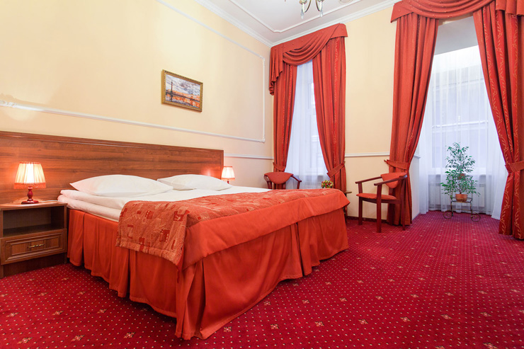Самолетом до аэропорта Пулково (г. Санкт-Петербург), далее на рейсовом автобусе №39 до остановки «ст. м. Московская», далее на метро до станции «Чернышевская», далее пройти пешком 810 м до отеля.