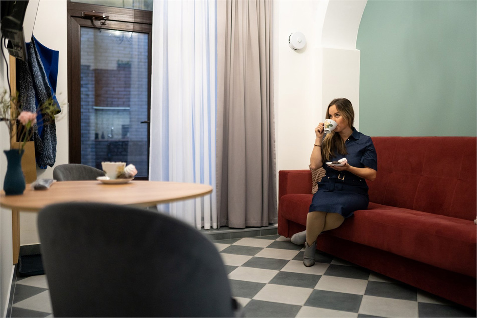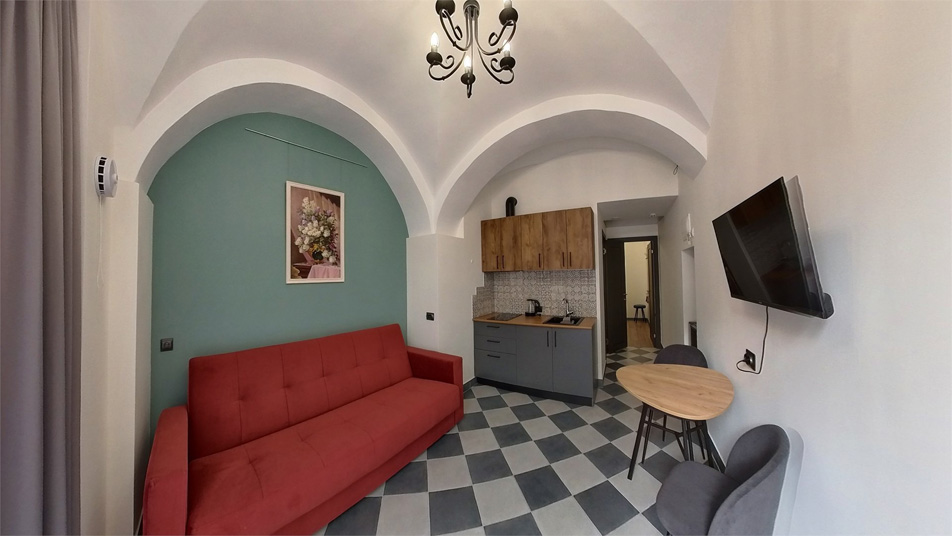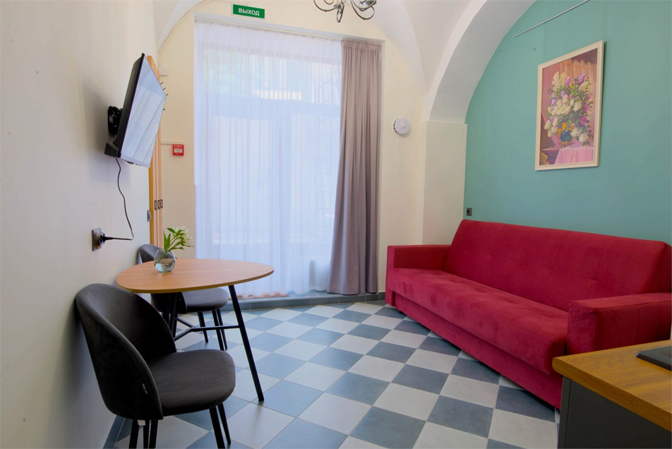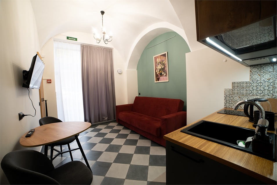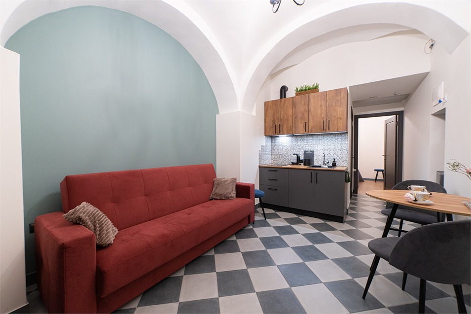 В спальнях удобные кровати с ортопедическими матрасами и высококачественным постельным бельем. Апартаменты идеально подходят как для больших семей и групп, так и для индивидуальных путешественников. Благодаря наличию оборудованной кухни, проживание на длительный срок становится особенно удобным! Еще одно преимущество отеля – бесплатная парковка, что является большой редкостью для центра города. Развитая инфраструктура, множество магазинов, ресторанов, кафе, а также удобное расположение рядом с метро!