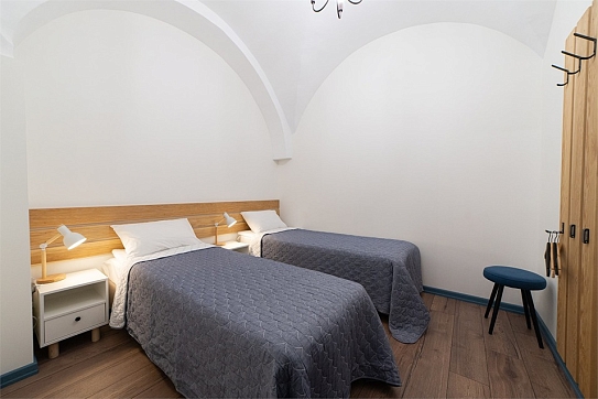 «Двенадцать» - это совершенно новый, комфортабельный апарт-отель на восемь номеров, каждый с персональным входом.В отеле представлены три типа номеров: просторные семейные апартаменты, бизнес-апартаменты с раздельными кроватями и уютные номера с широкой двуспальной кроватью. Кухня-гостиная в каждой категории номеров укомплектована всем необходимым: варочная панель, холодильник, посуда, телевизор, а также приветственный набор от отеля. В ванных комнатах установлены современные душевые кабины, стиральные машины, предусмотрены гладильные доски, утюги и фены.