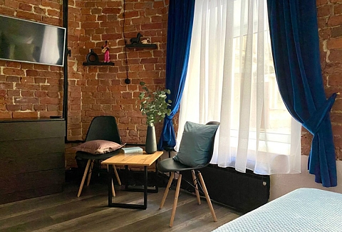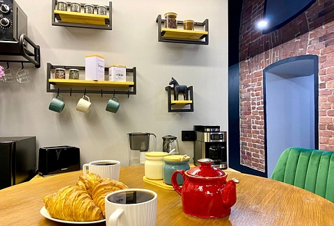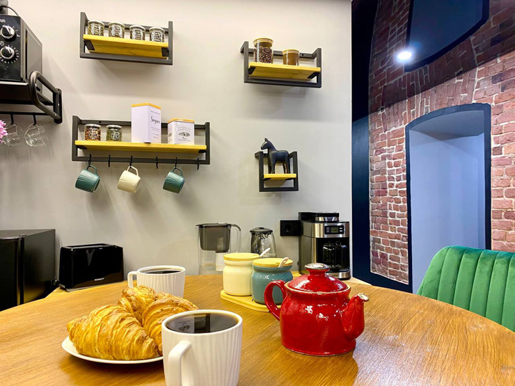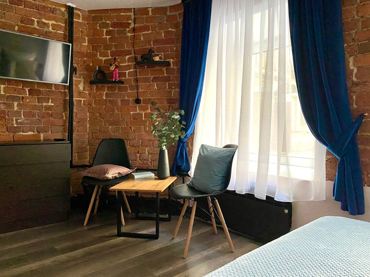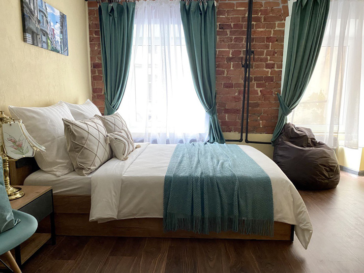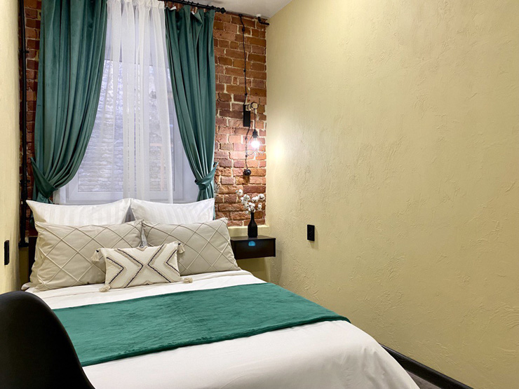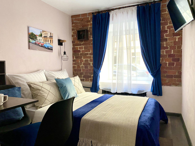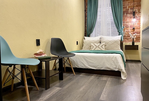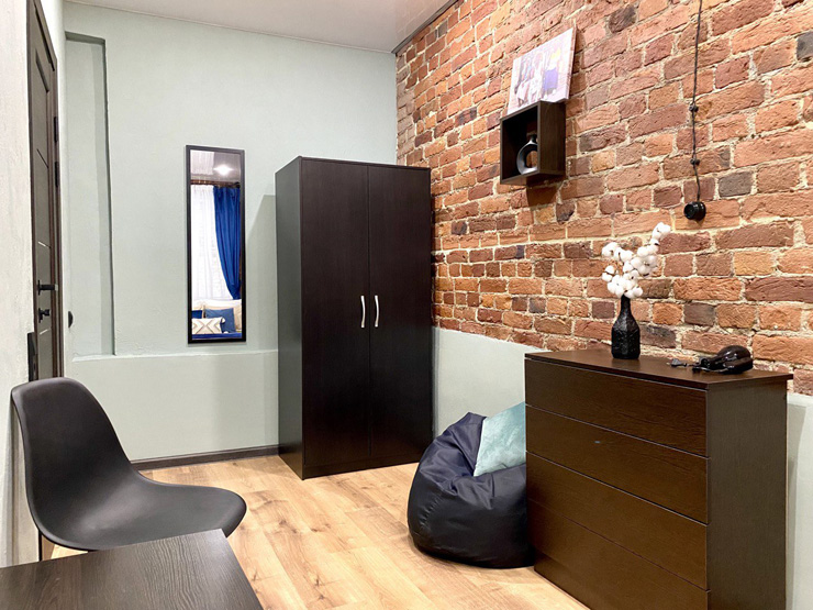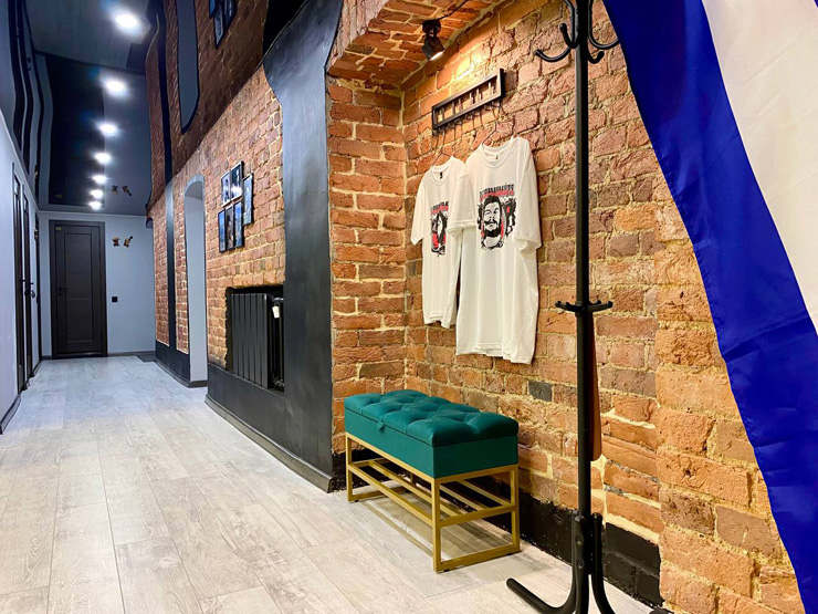 Ближайший круглосуточный продуктовый магазин открыт в соседнем здании. Припарковать автомобиль можно вдоль дороги.В интерьерах использована кирпичная кладка, много отсылок к знаменитому команданте Эрнесто Че Геваре. Жилой фонд включает 3 номера с собственным санузлом и 4 комнаты с общими удобствами на этаже. Все категории стильно оформлены, укомплектованы новой мебелью и техникой, наборами косметических принадлежностей.Обустроена кухня, где есть все необходимое для самостоятельного приготовления легких закусок, горячих напитков. В общем доступе установлена стиральная машина, по запросу предоставляются гладильные принадлежности. Во всем корпусе предусмотрено подключение к Wi-Fi.
