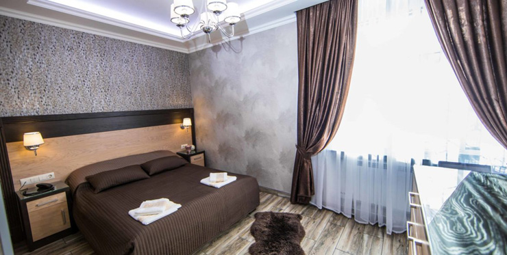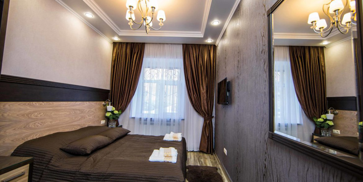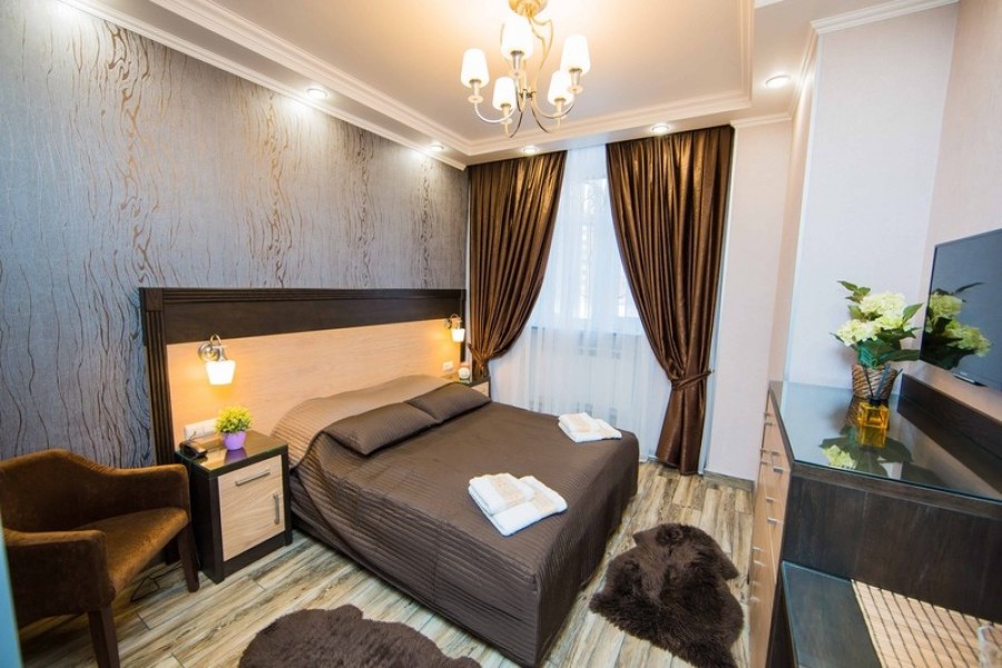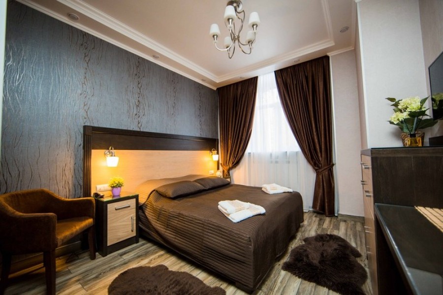 Столько же ехать к аэропорту Пулково на автомобиле. Гостиница занимает часть многоэтажного жилого дома. Есть отдельный вход, ресепшн работает круглосуточно. Открыта общая кухня, где каждое утро для гостей накрывают завтрак. Также в радиусе 2 километров расположено порядка 140 кафе и ресторанов на любой вкус.Номерной фонд представлен несколькими категориями. Комнаты оформлены в кофейных тонах, в интерьерах использованы натуральные материалы — дерево и мрамор. Имеется все необходимое для комфортного размещения: двуспальные кровати размера king size, мягкая и корпусная мебель, современная техника, санузлы. Можно подключиться к Wi-Fi.