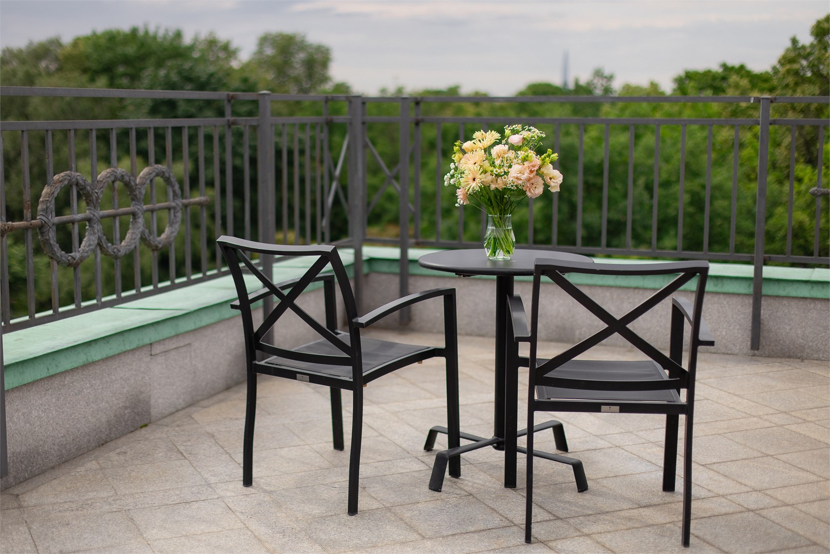 В номере: вешалка, зеркало, кровать двуспальная, прикроватные тумбочки, стол, стулья, шкаф, гладильная доска, кофемашина, мини-холодильник, сейф, сплит-система, телевизор, телефон, утюг, электрочайник