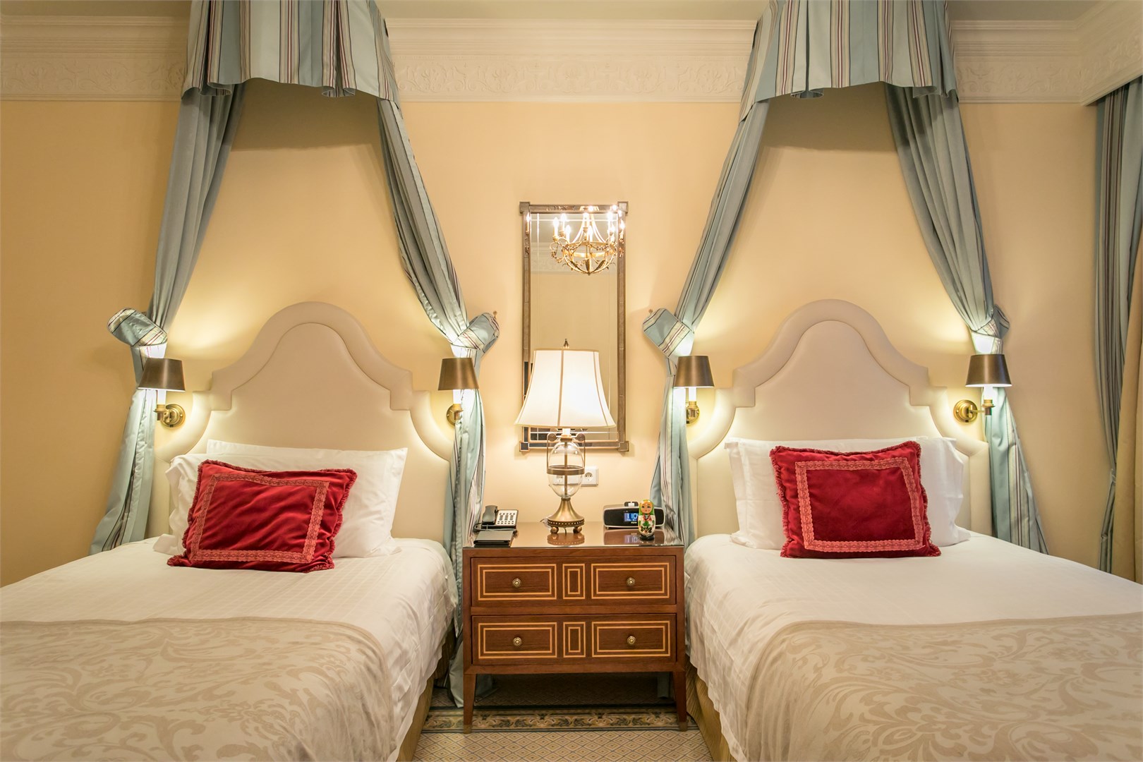 В номере: вешалка, зеркало, кровати односпальные, прикроватные тумбочки, стол, стулья, шкаф, гладильная доска, кофемашина, мини-холодильник, сейф, сплит-система, телевизор, телефон, утюг, электрочайник
