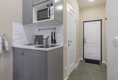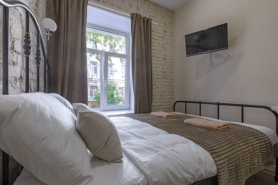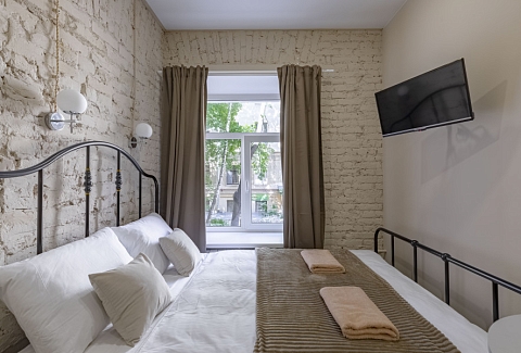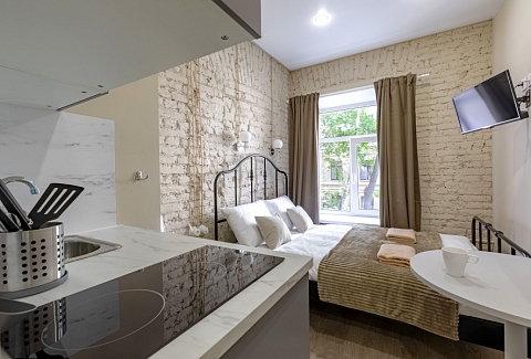 А до Московского железнодорожного вокзала, куда прибывает большинство поездов из столицы – 20 минут на авто. Апартаменты расположились в четырехэтажном историческом жилом доме. В распоряжении гостей однокомнатный 2-местный номер, оформленный в современном стиле с элементами лофта. Среди удобств – кухонный уголок с электроплитой и микроволновой печью, стиральная машина, телевизор и высокоскоростной интернет. В персональной ванной комнате – душевая кабина и набор косметических принадлежностей для гостей.