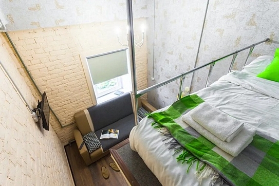Апартаменты «Guests Love» расположены в историческом квартале Северной столицы недалеко от Таврического сада, музея-квартиры Иосифа Бродского, Воскресенской набережной, станции метро «Чернышевская». Пешая прогулка к основным достопримечательностям в сердце Санкт-Петербурга займет около 40 минут.Уютная двухуровневая студия размещена в старинном здании, ранее принадлежавшем зажиточной династии предпринимателей и меценатов Варгуниных. Нижний уровень оборудован как гостиная с диваном, кухонной и обеденной зонами, здесь же оснащен совмещенный санузел с душевой.