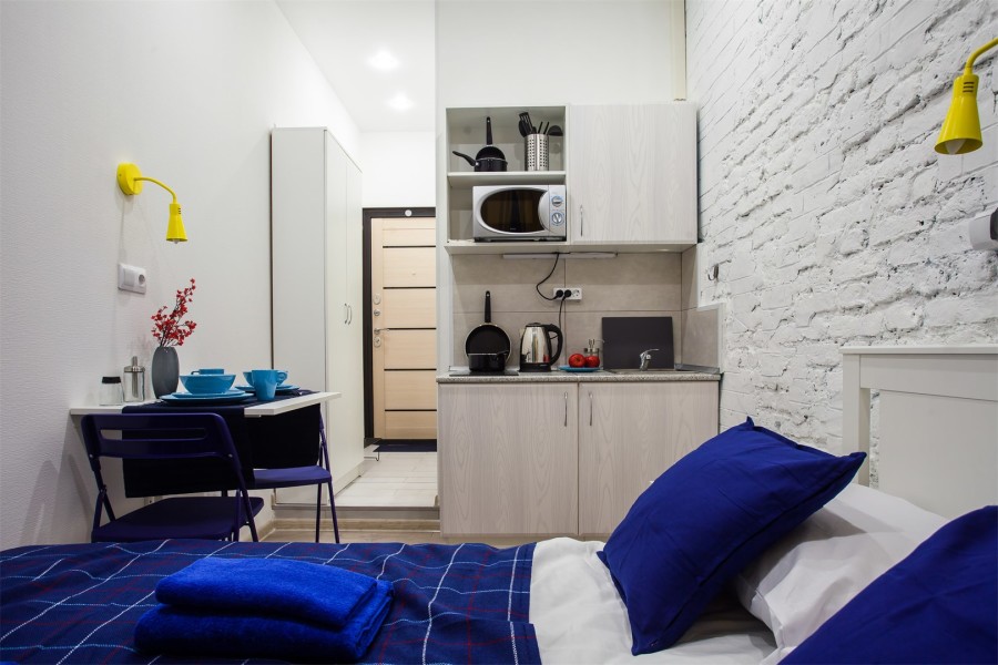 Гумилева, а также большой выбор баров, кафе и магазинов. Невский проспект и все основные достопримечательности северной столицы всего в 5 минутах ходьбы, а до Московского вокзала, куда прибывают скоростные сапсаны, – 20 минут пешком.Четырехэтажное историческое здание, в котором разместились апартаменты, расположено на знаменитой барной улице города – улице Рубинштейна. В распоряжении гостей двухместные номера со светлыми интерьерами, дополненными яркими деталями. Среди удобств – кухонный уголок с электроплитой, электрочайником, микроволновой печью, стиральной машиной и мини-холодильником, телевизор и высокоскоростной интернет, санузел с душевой кабиной, а также косметические принадлежности для гостей.