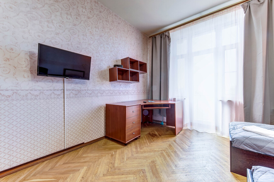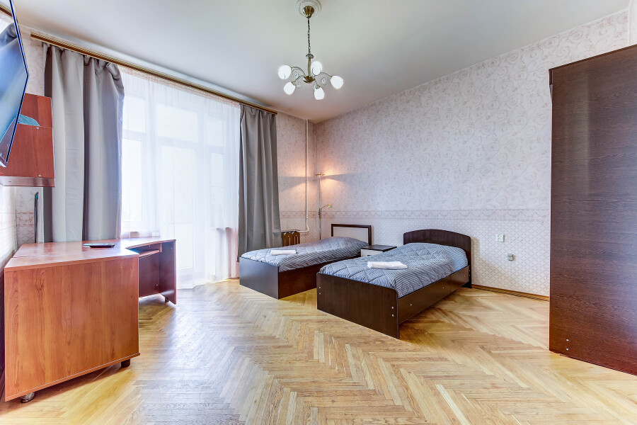 Самолетом до аэропорта Пулково, далее на рейсовом автобусе №39 до остановки «ул. Авиационная», далее на метро до станции «Горьковская», далее пройти пешком 1,2 км до апартаментов.