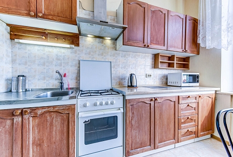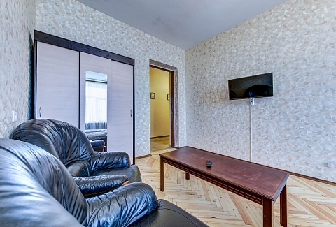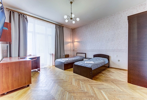В номере: вешалка, зеркало, кресла, кровати односпальные, кровать двуспальная, прикроватные тумбочки, стол для компьютера, стулья, тумба, шкаф, гладильная доска, духовой шкаф, микроволновая печь, набор посуды, плита газовая, стиральная машина, телевизор ЖК, чайный набор посуды, электрочайник