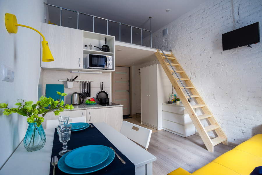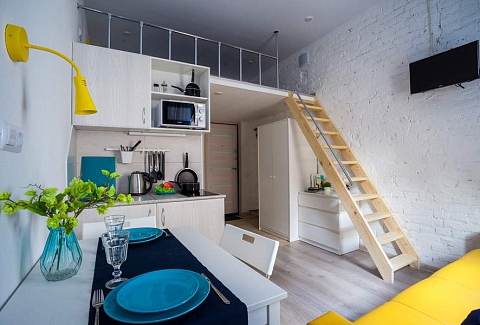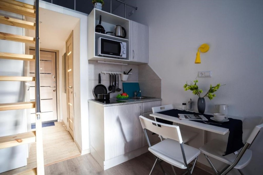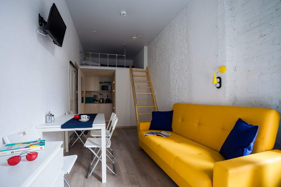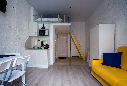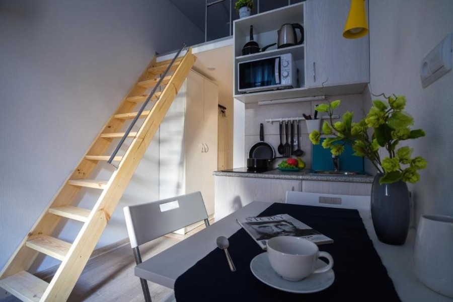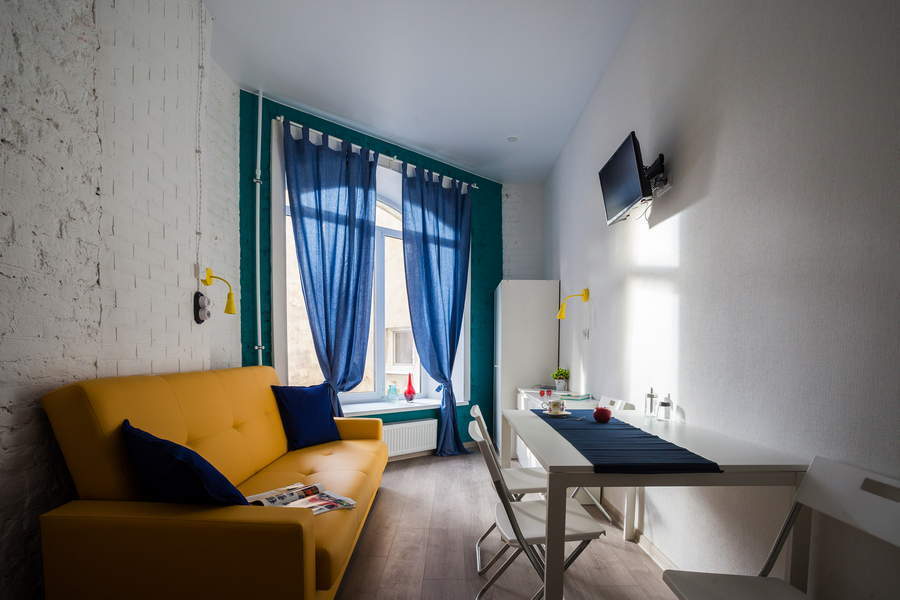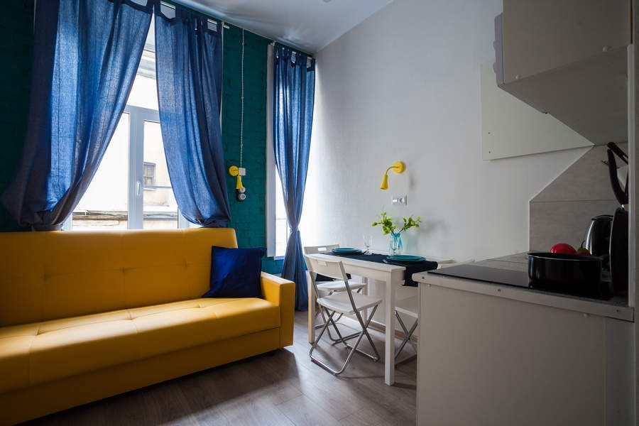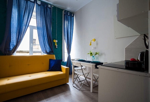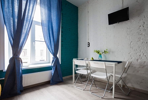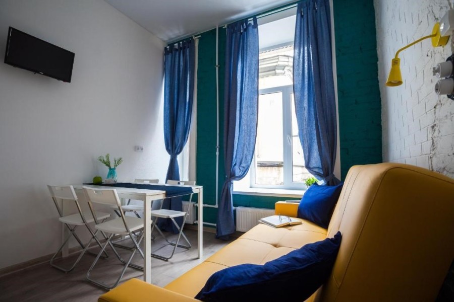 Поблизости построен один из символов города – знаменитый Аничков мост. Его дополнили скульптурной группой из коней, созданных Петром Карловичем Клодтом – великим скульптором-анималистом в российском искусстве.Гостевые квартиры выполнены в современном дизайне, с элементами стиля лофт. Компактная кухня и санузел с душем оборудованы в каждой комнате.
