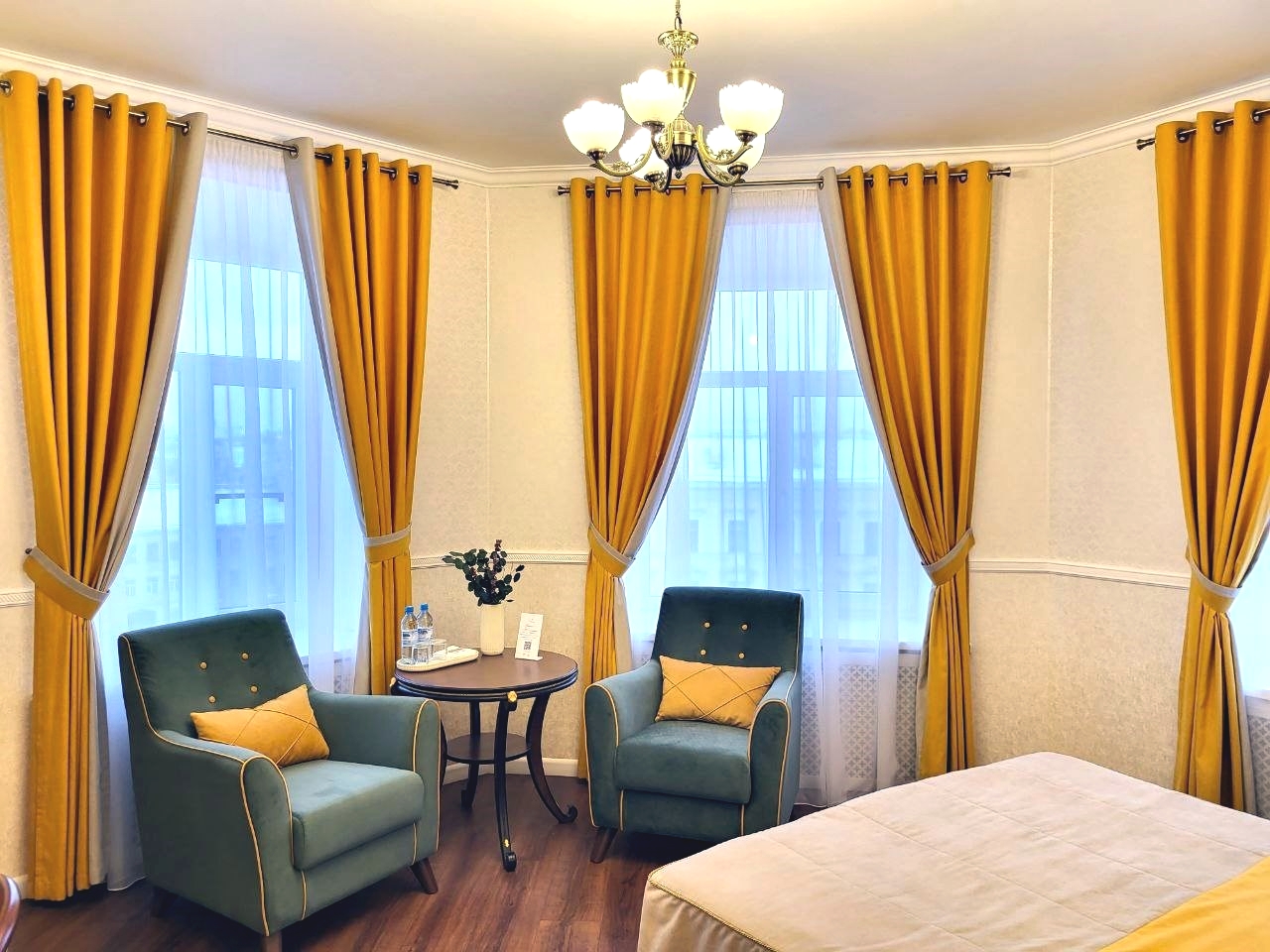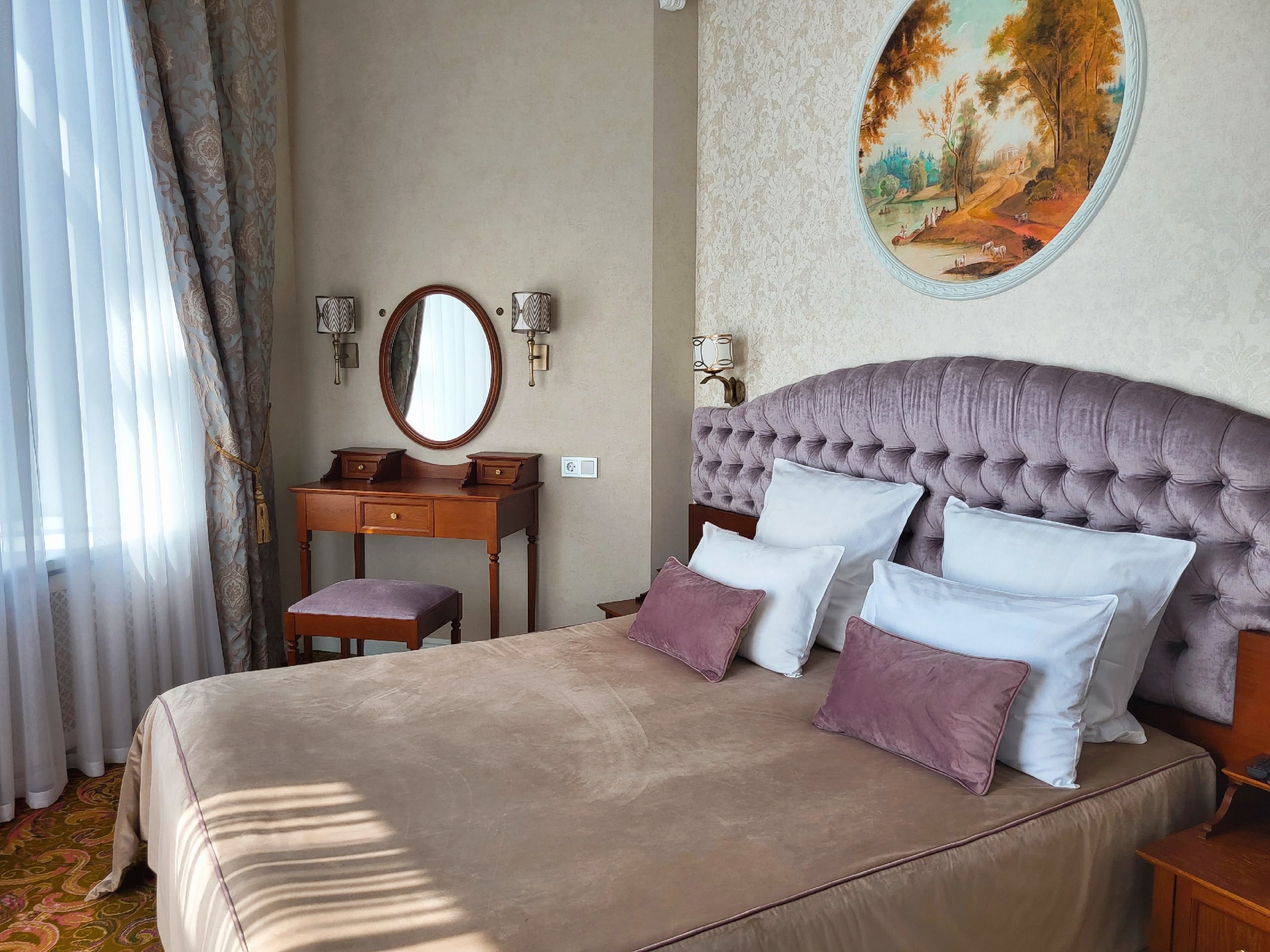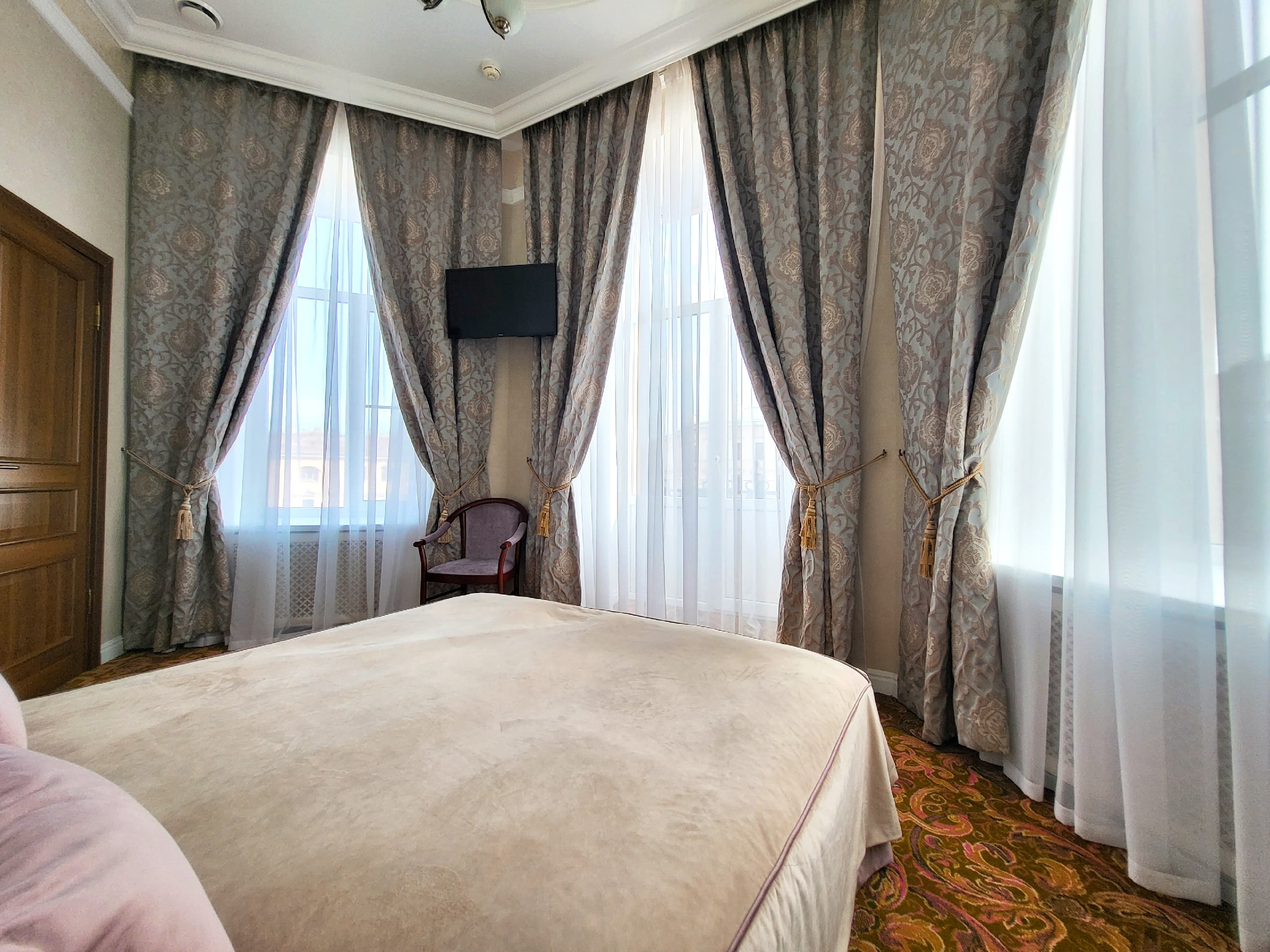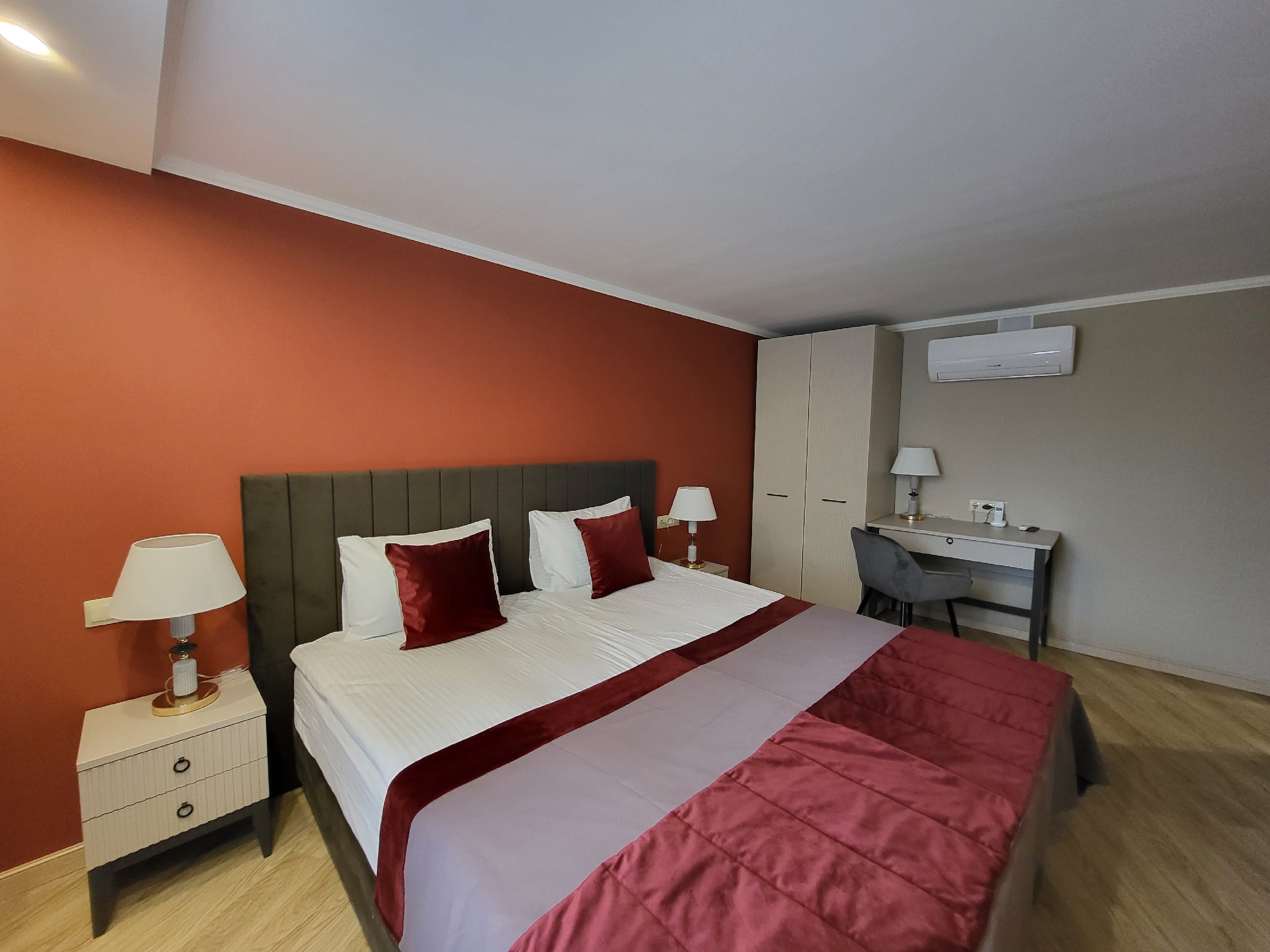 В номере: вешалка, зеркало, кресла, кровати односпальные /одна двуспальная кровать, прикроватные тумбочки, стол, стулья, шкаф, кондиционер, мини-холодильник, сейф, телевизор, телефон