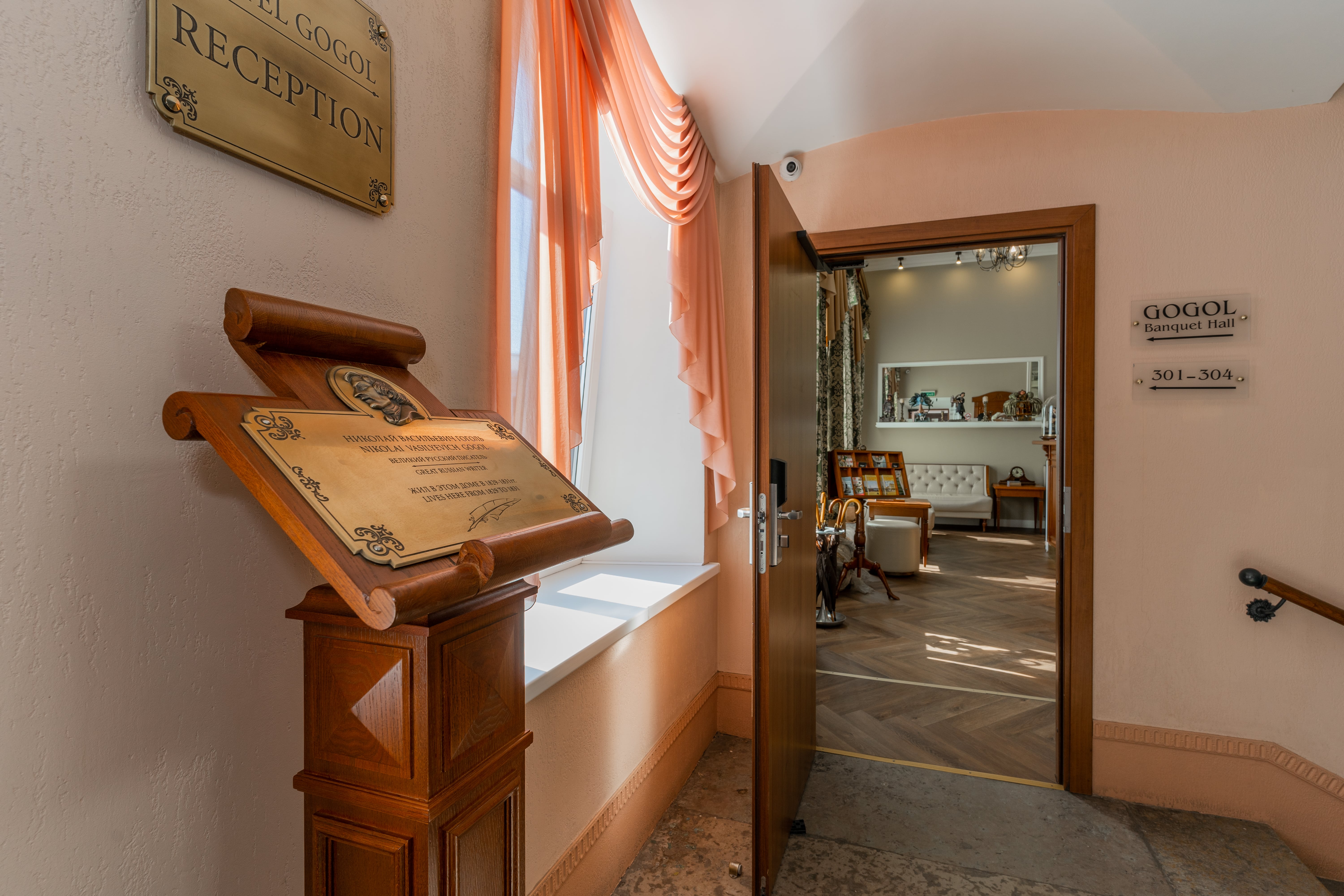 Четырехзвездочный отель «Гоголь» находится в центральной части Санкт-Петербурга в шаговой доступности от Сенной площади. Рядом —несколько станций метро, остановки общественного транспорта, до Невского проспекта и главных достопримечательностей — Исаакиевского собора, Эрмитажа, Адмиралтейства можно дойти пешком. Отель разместился в 6-ти этажном здании, расположенном на набережной канала Грибоедова, где долгое время жил писатель Николай Гоголь.