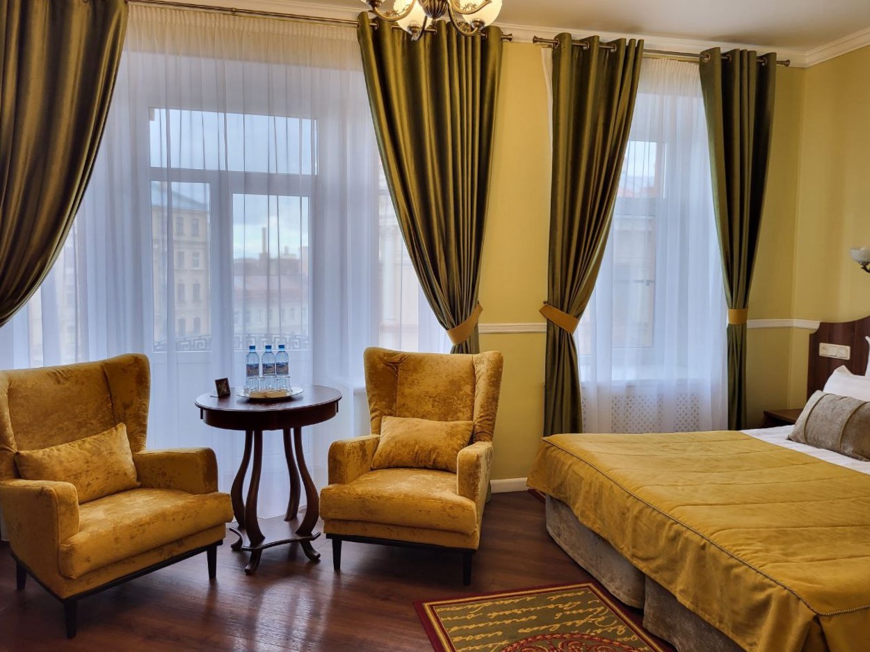 Поездом до ж/д вокзала Московский, далее на метро от станции «Маяковская» до «Гостиного двора», далее пересадка на станции «Невский проспект» до «Сенной площади», пройти 480 м до отеля.