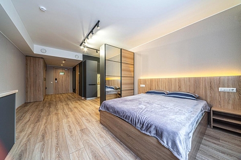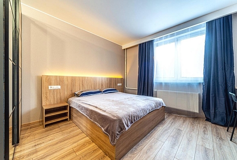 Ближайшие достопримечательности: сад Новодевичьего монастыря, Театр юных зрителей, Детский ледовый театр. Расстояние до аэропорта составляет 17 километров, до железнодорожного вокзала – 1,7 километров. Апартаменты находятся в 13-этажном жилом доме с лифтом. В комнатах выполнен дизайнерский ремонт. Для удобства гостей установлены большая кровать для отдыха, шкафы для одежды, есть рабочая зона, телевизор, Wi-Fi. Ванная комната оборудована душевой кабиной, отдыхающим предоставляются туалетные принадлежности. Кухня полностью обставлена техникой для самостоятельного приготовления еды. В ней есть холодильник, электрическая плита, микроволновая печь, чайник, набор посуды и столовых приборов. Для автовладельцев возле дома предусмотрена парковка.