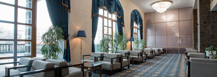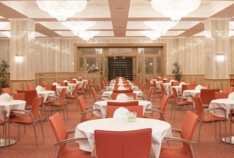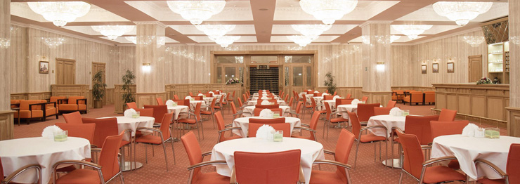 Особенностью Комплекса является возможность размещения участников и проведения мероприятий под одной крышей. К услугам гостей Ресторан на 300 посадочных мест, отдельный VIP зал на 80 человек, Лобби-бар вместимостью до 100 человек, организация кофе-брейков, обедов, фуршетов с возможностью адаптации меню под нужды заказчика, а также современный двухуровневый фитнес-зал.