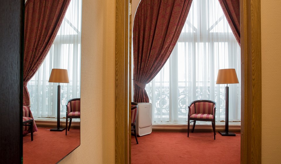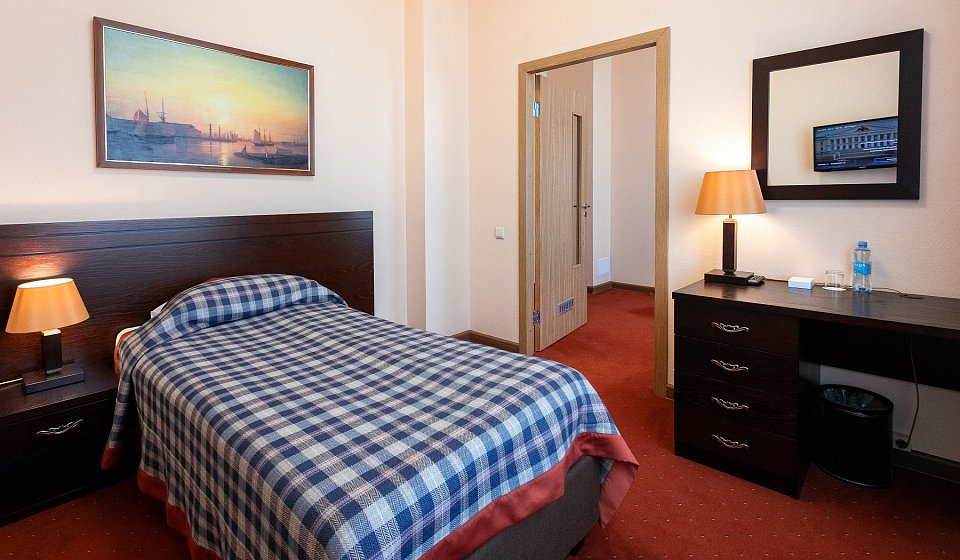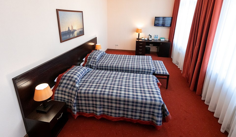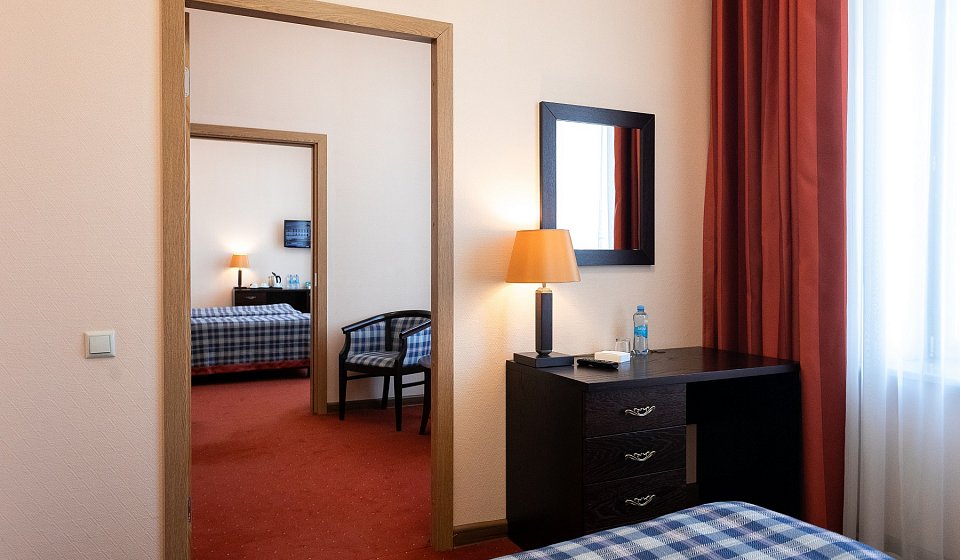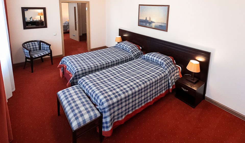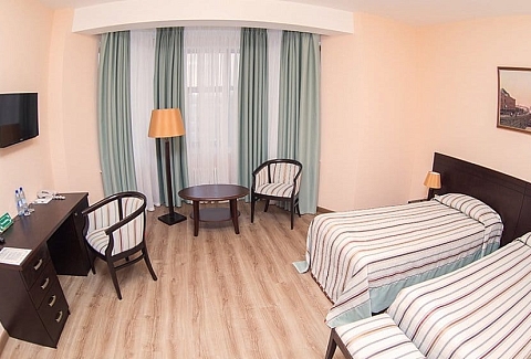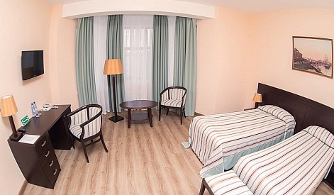 В номере: гардеробная, зеркало, кровати односпальные /одна двуспальная кровать, прикроватные тумбочки, стол, стулья, мини-холодильник, сейф, телевизор, телефон, чайная станция, чайный набор посуды, электрочайник