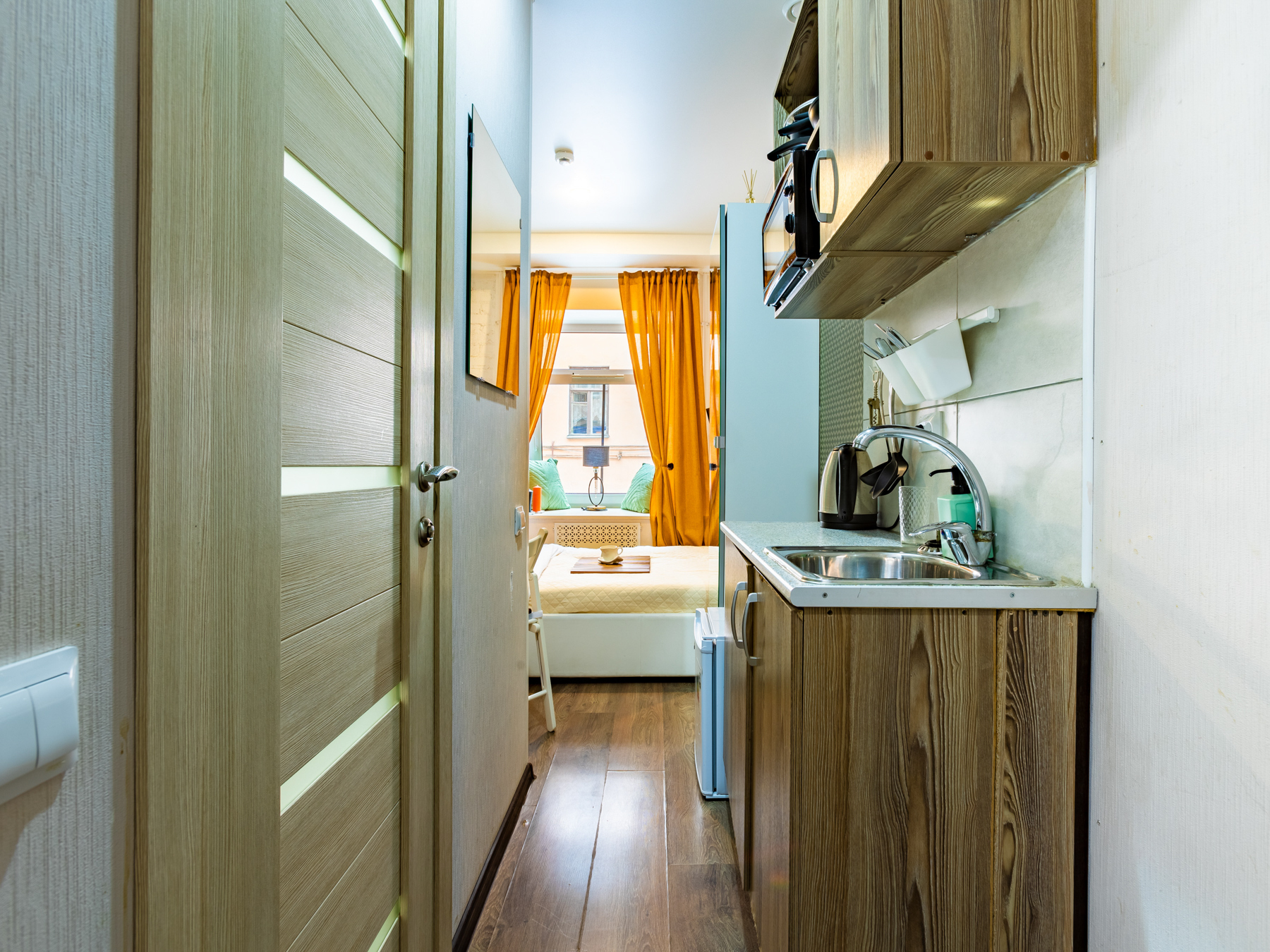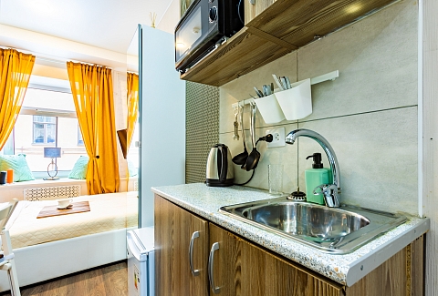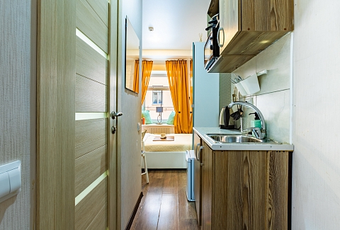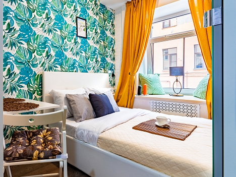 Окна выходят во двор, что гарантирует тишину и спокойствие в центре оживлённого города. Для гостей, путешествующих на автомобиле, парковка доступна в районе.Уютные Апартаменты рассчитаны на двоих гостей. В распоряжении — удобная двуспальная кровать, стол со стульями и вместительный шкаф для вещей. Мини-кухня оборудована электрической плитой, холодильником, микроволновой печью, электрочайником и полным набором посуды, что позволяет с комфортом готовить и принимать пищу. В ванной комнате с душем гостей ждут стиральная машина, сушилка для белья, фен и необходимые средства личной гигиены.Для комфортного пребывания предусмотрены телевизор, беспроводной Wi-Fi, а также утюг с гладильной доской. Апартаменты станут идеальным выбором для тех, кто ценит тишину в самом центре города и хочет исследовать Санкт-Петербург, имея под рукой всё необходимое для уютного и самостоятельного проживания.