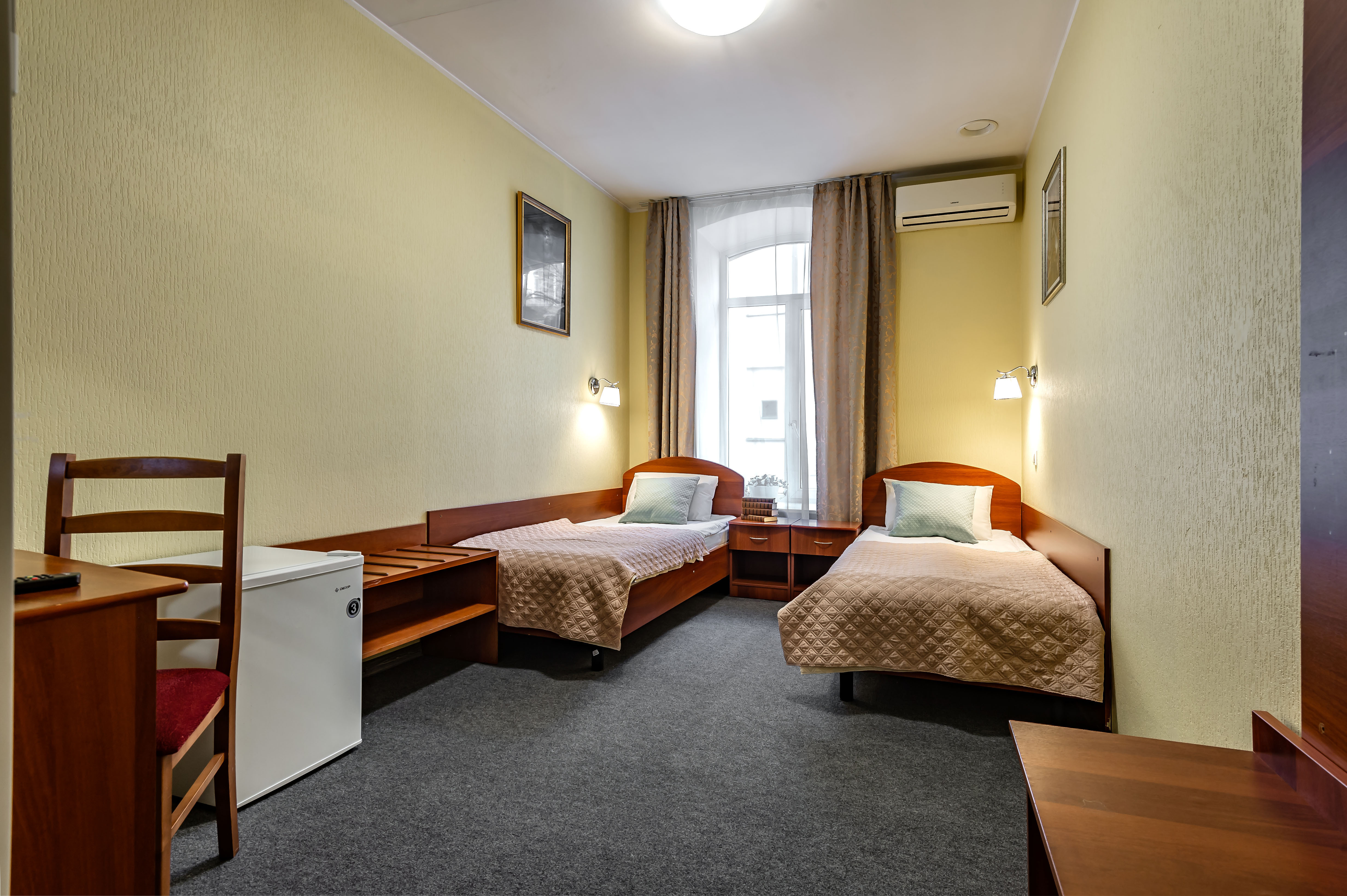 В номере: вешалка, зеркало, кровати односпальные /одна двуспальная кровать, прикроватные тумбочки, стол, стулья, шкаф, сейф, сплит-система, телевизор, холодильник