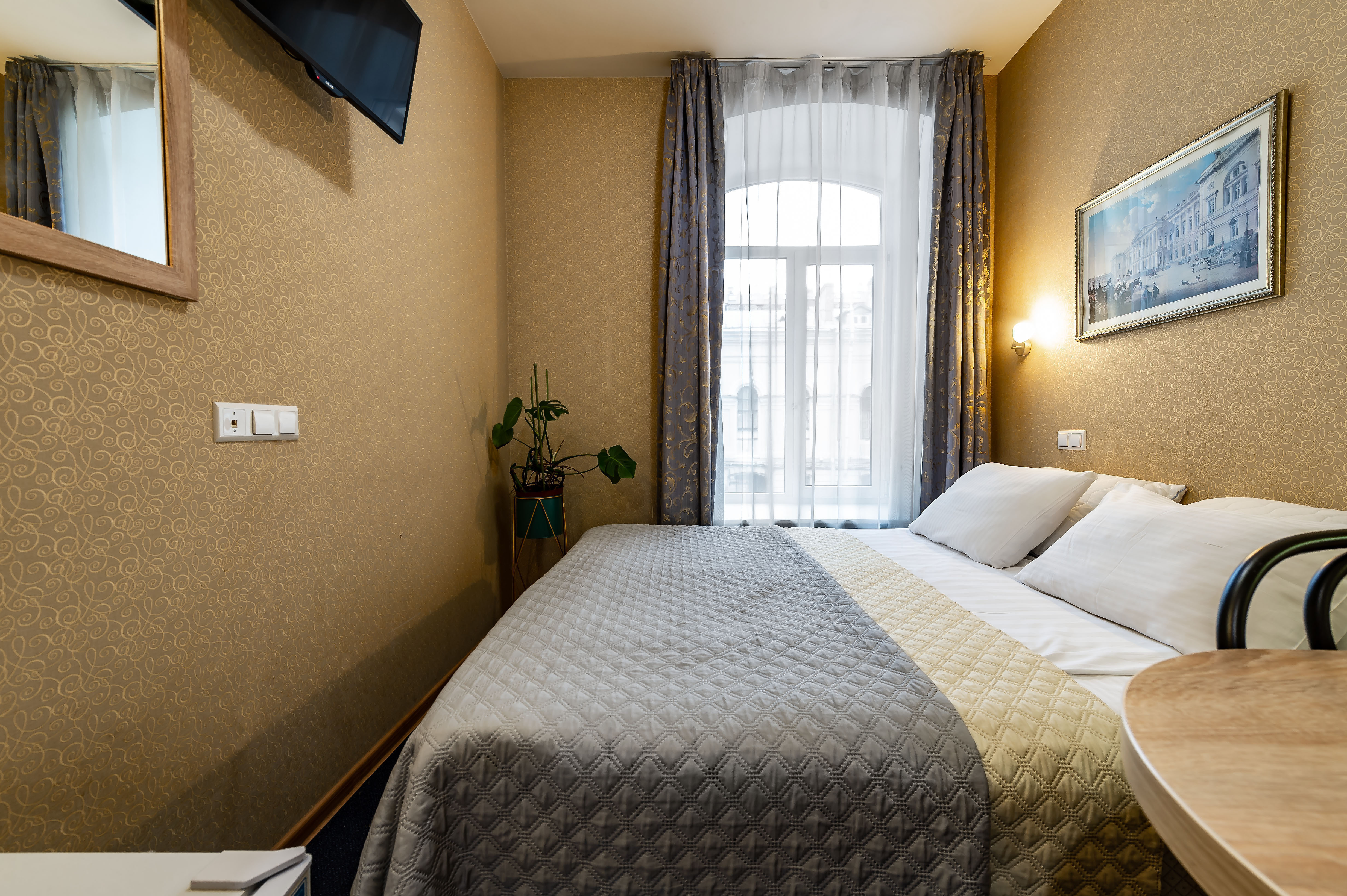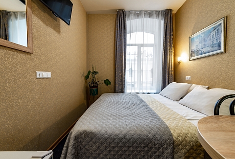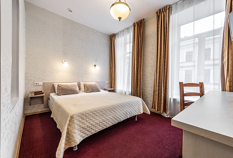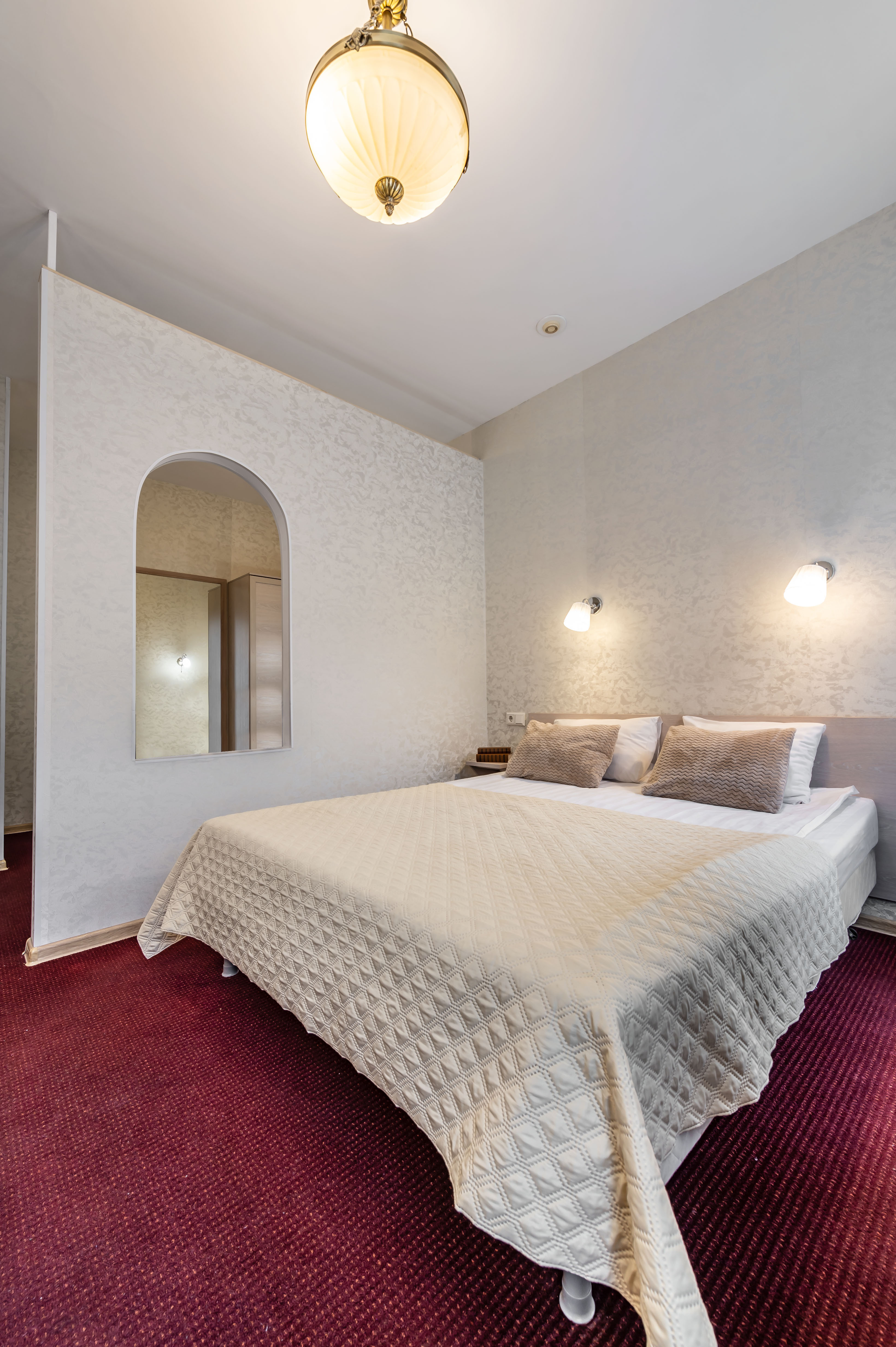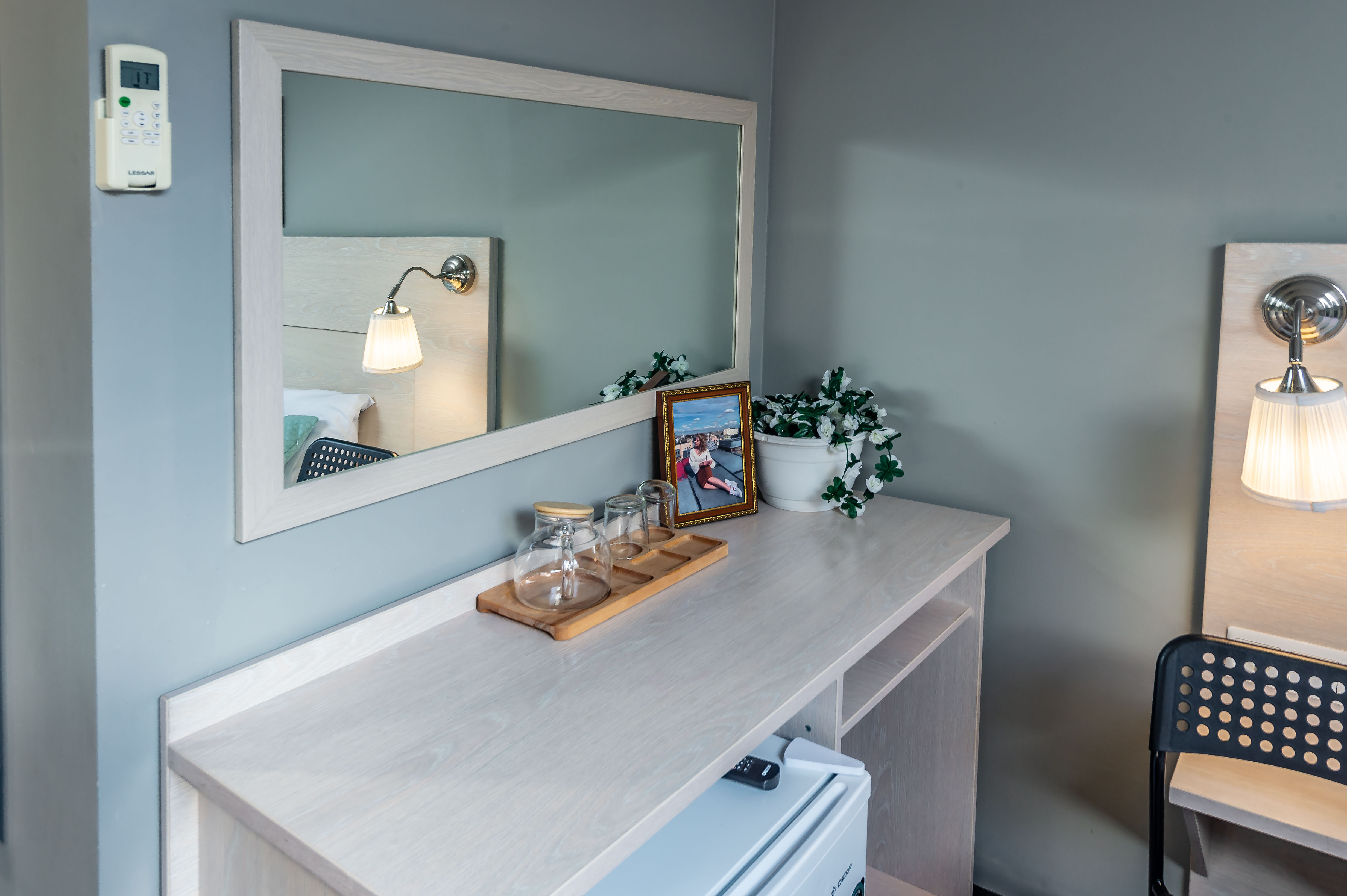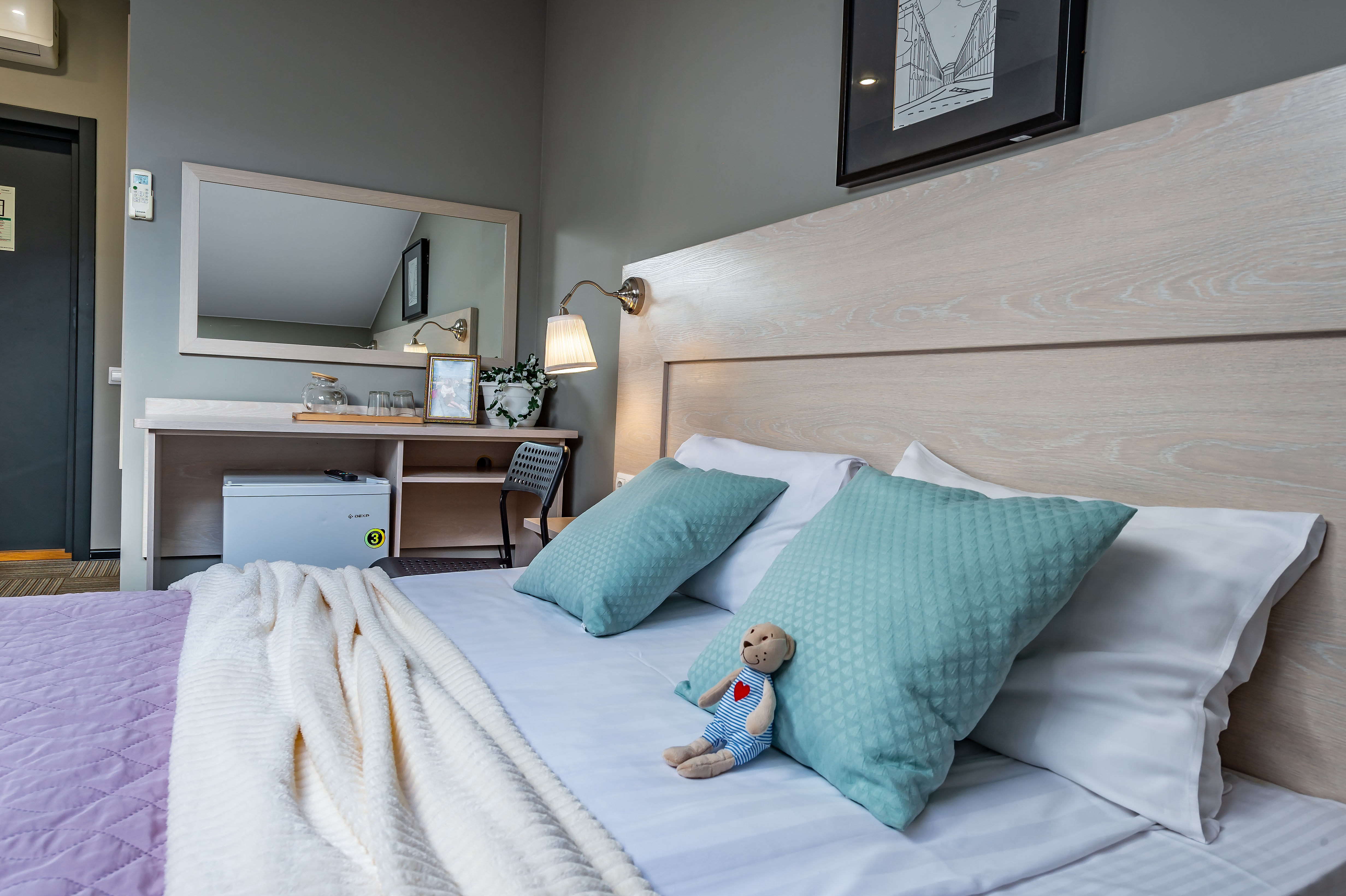 В номере: вешалка, зеркало, кровать двуспальная/ две полутороспальные кровати, прикроватные тумбочки, стол, стулья, шкаф, мини-холодильник, сплит-система, телевизор