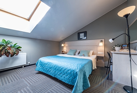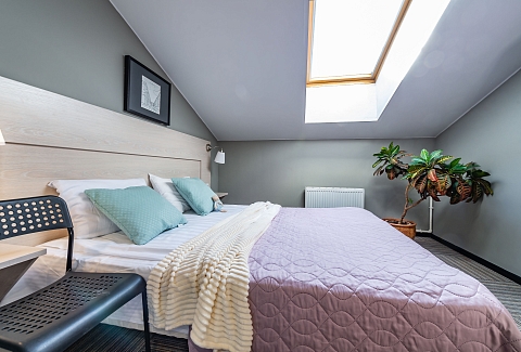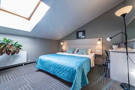 В номере: вешалка, зеркало, кресло-кровать, кровати односпальные /одна двуспальная кровать, прикроватные тумбочки, стол, стулья, шкаф, мини-холодильник, сейф, сплит-система, телевизор