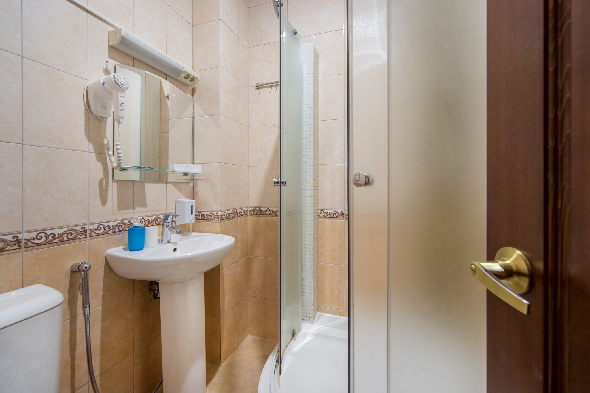 Санузел: с душем, туалетные принадлежности, фен