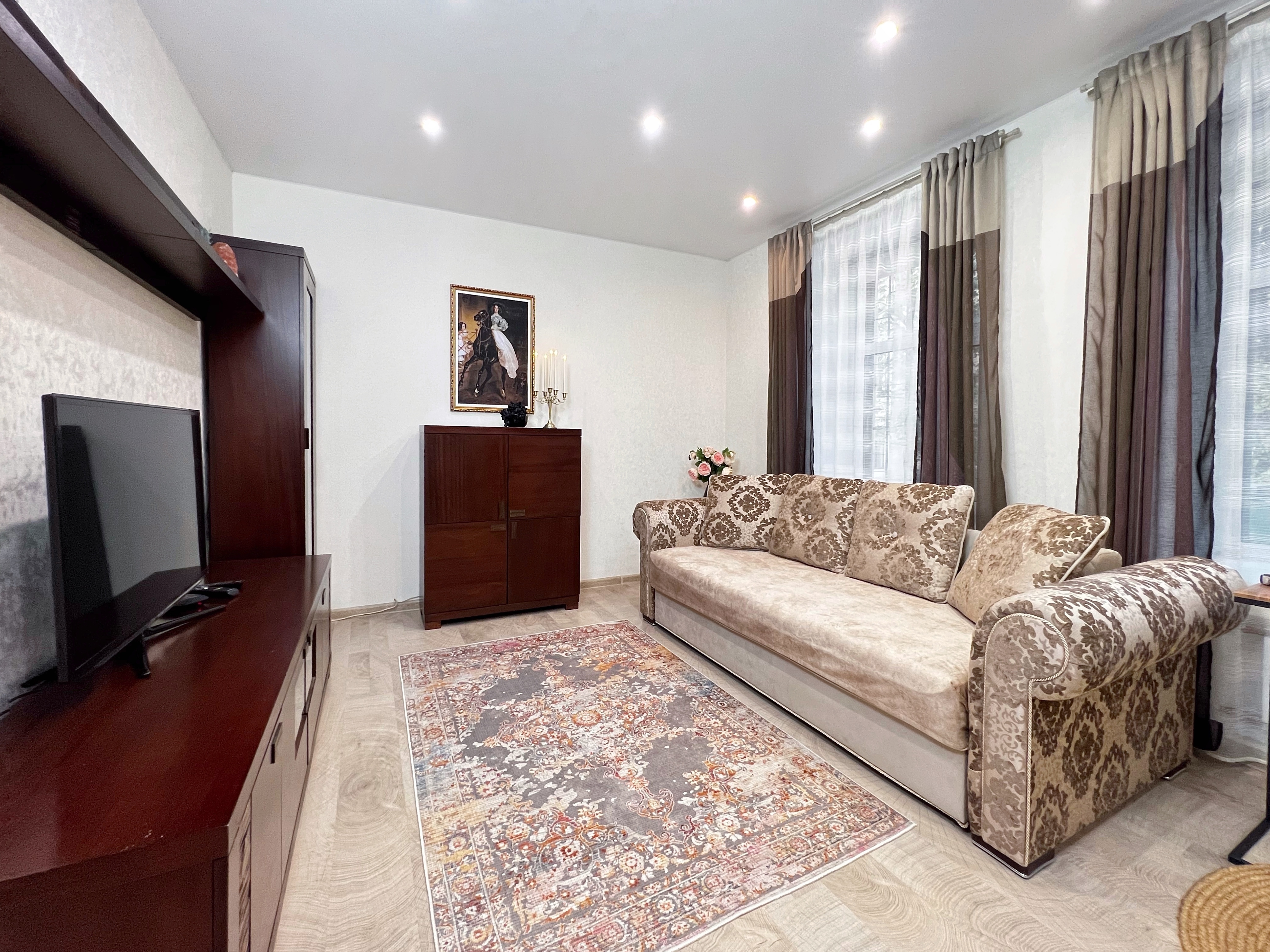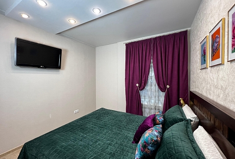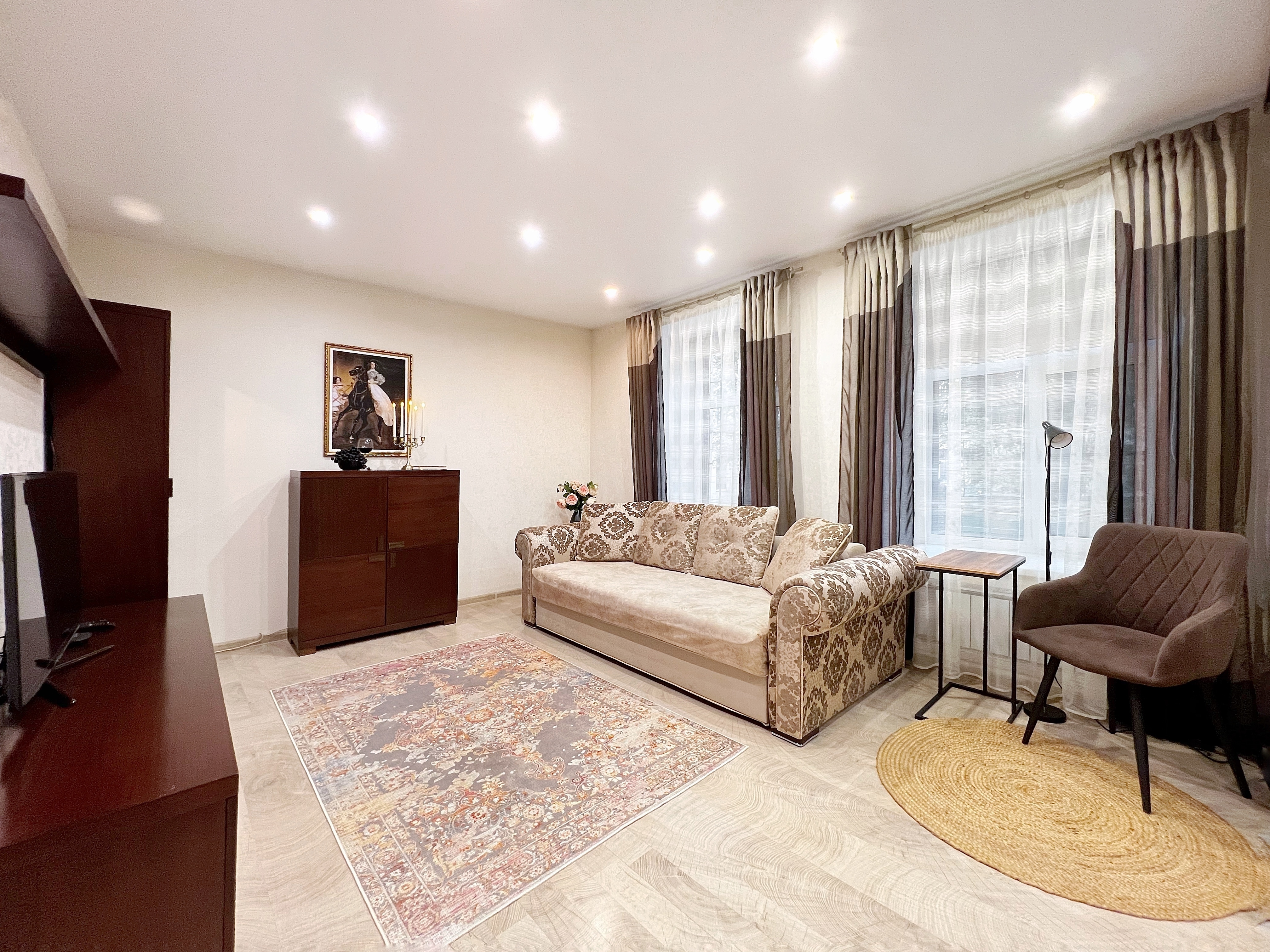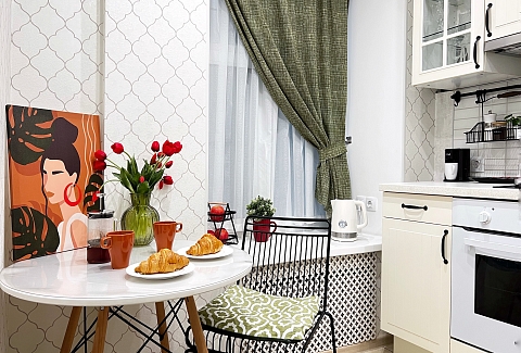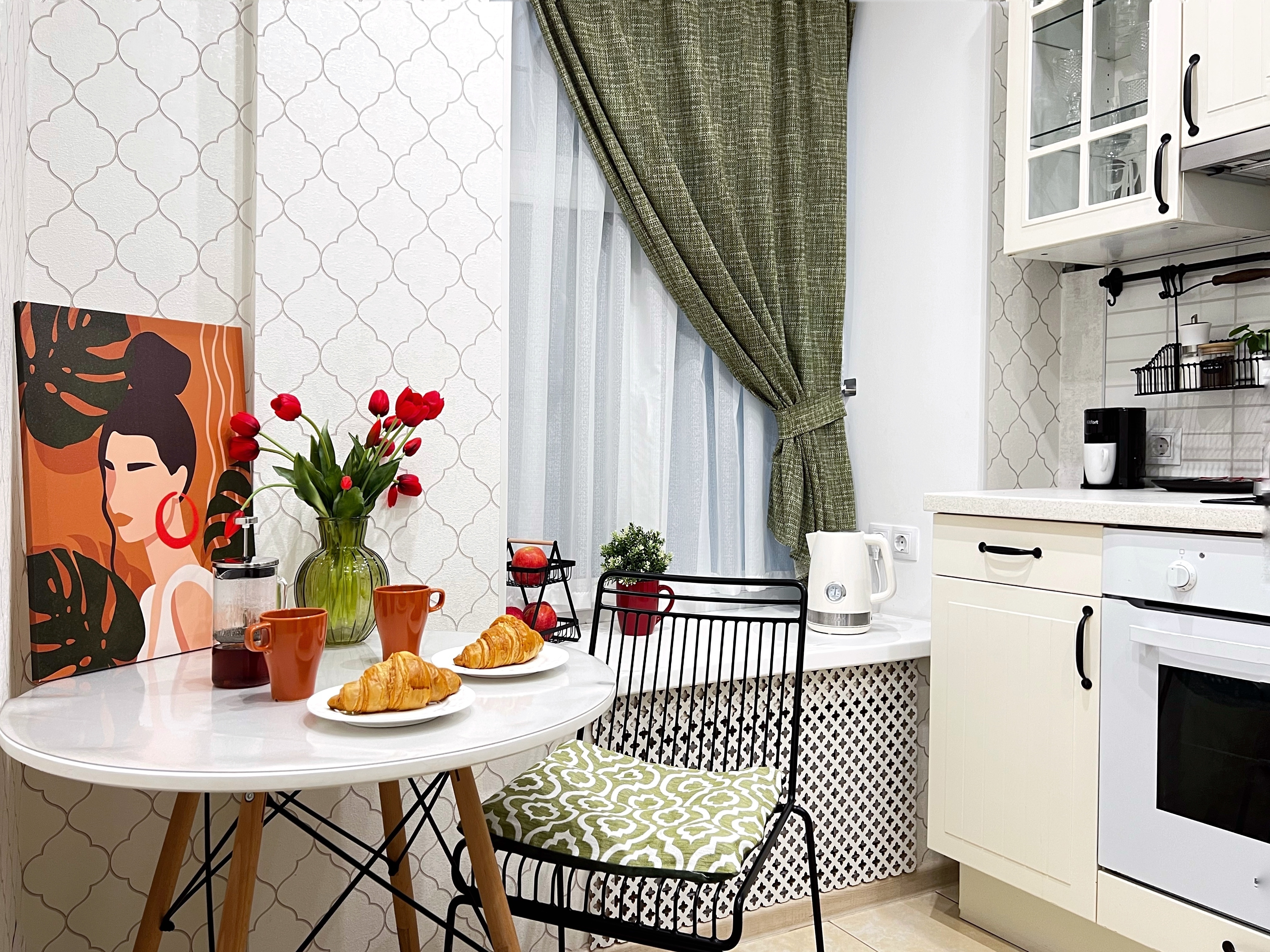 Расстояние до аэропорта на автомобиле составляет около 30 минут. В пешей доступности — набережная канала Грибоедова и Сенная площадь. Несмотря на центральное расположение, апартаменты выходят в тихий двор. Пространство оформлено в современном стиле и оснащено всем необходимым для комфортного проживания. В комнате — двуспальная кровать и двуспальный диван-кровать. По запросу можно добавить переносную кровать или детский стульчик для кормления. Кухня оборудована плитой, холодильником, микроволновой печью, электрическим чайником, всей необходимой посудой и столовыми приборами. Гостей ждет приветственный набор с чаем, кофе и сахаром, подсолнечное масло в холодильнике. Ванная комната оснащена душевой кабиной и стиральной машиной. Предусмотрены капсулы для стирки, сушилка для белья и гладильные принадлежности. Для гостей подготовлены предметы гигиены, постельное белье и полотенца, фен. В апартаментах работают спутниковое телевидение и высокоскоростной беспроводной интернет. Для гостей, путешествующих на автомобиле, предусмотрена парковка на территории дома.