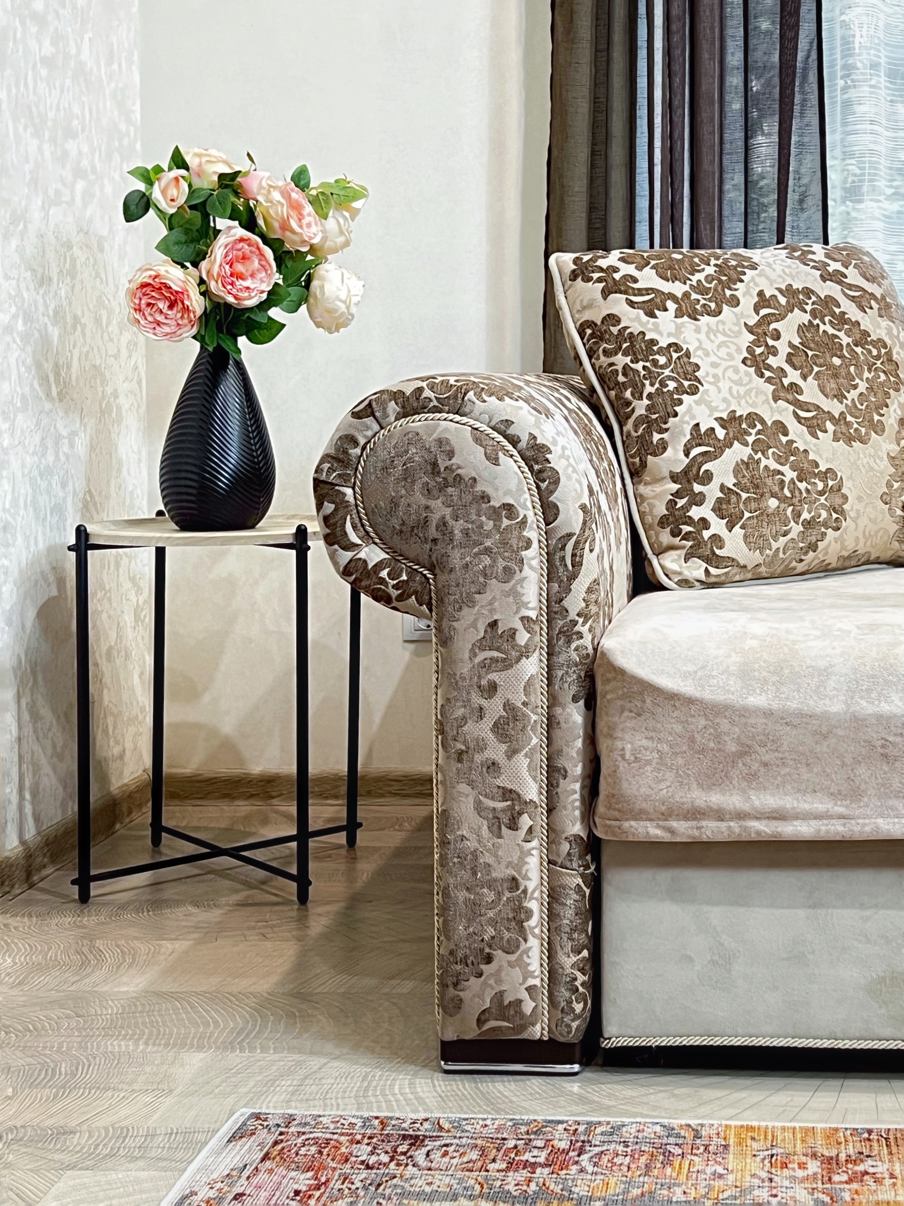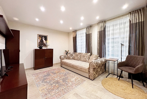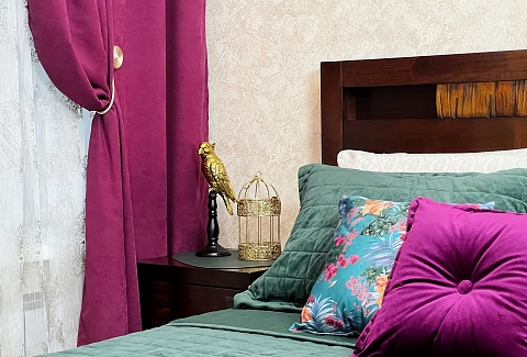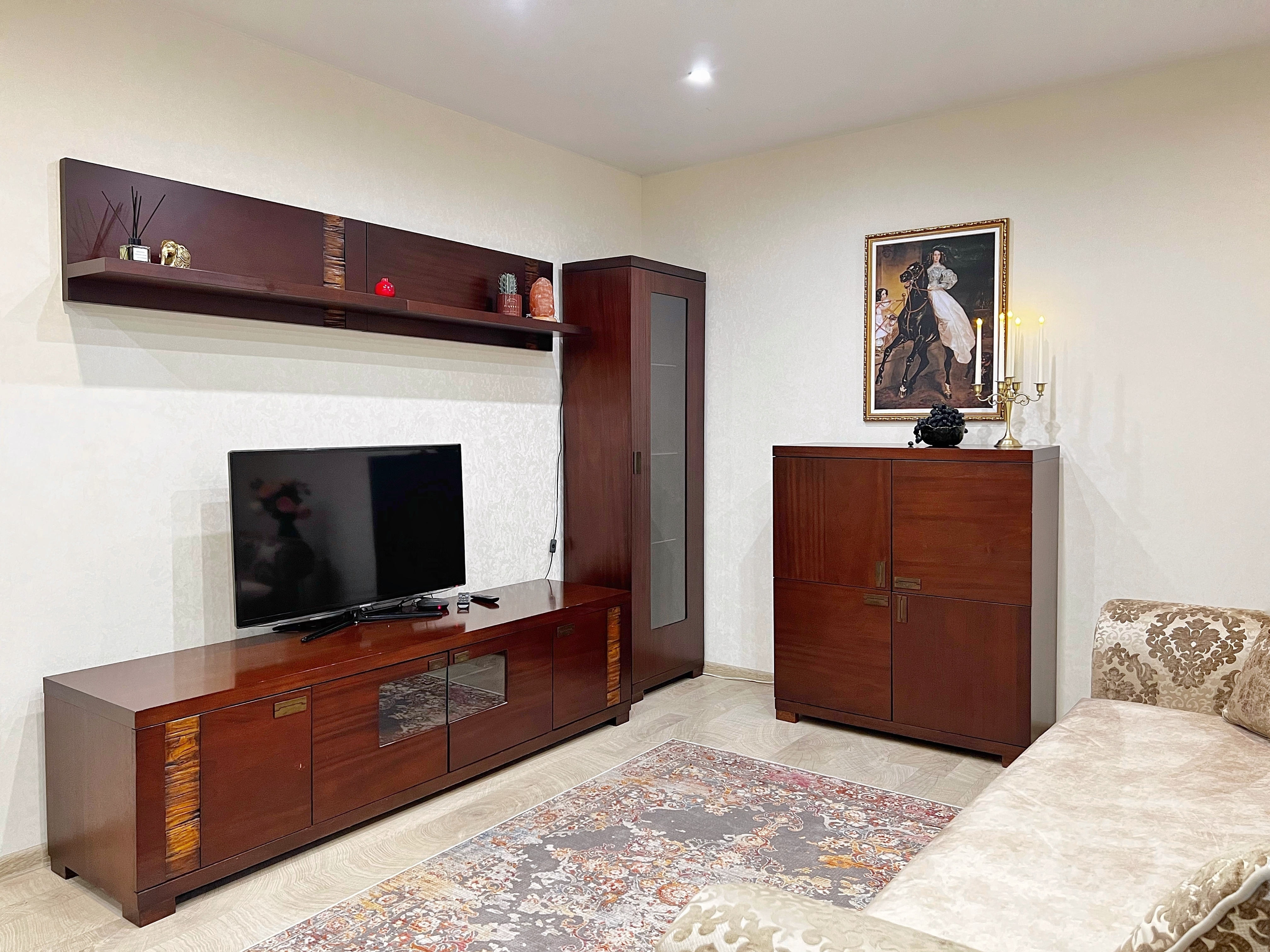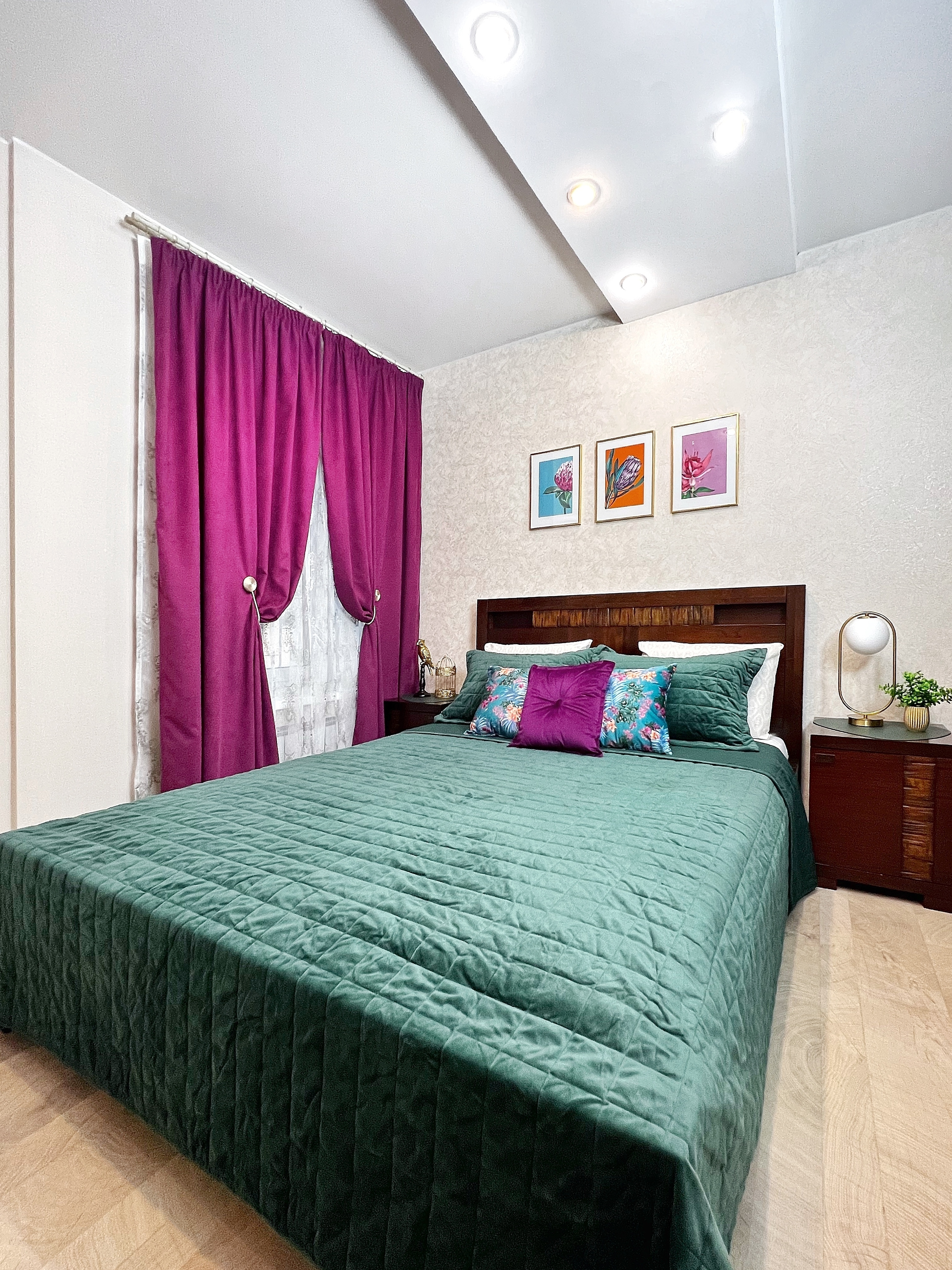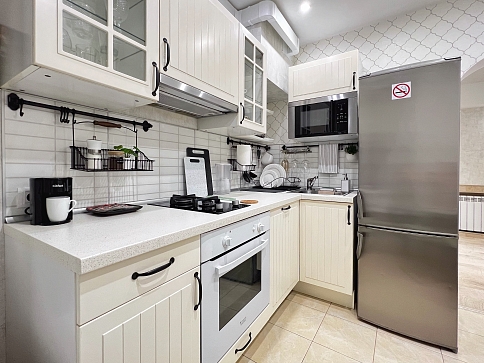 Расстояние до аэропорта на автомобиле составляет около 30 минут. В пешей доступности — набережная канала Грибоедова и Сенная площадь. Несмотря на центральное расположение, апартаменты выходят в тихий двор. Пространство оформлено в современном стиле и оснащено всем необходимым для комфортного проживания. В комнате — двуспальная кровать и двуспальный диван-кровать. По запросу можно добавить переносную кровать или детский стульчик для кормления. Кухня оборудована плитой, холодильником, микроволновой печью, электрическим чайником, всей необходимой посудой и столовыми приборами. Гостей ждет приветственный набор с чаем, кофе и сахаром, подсолнечное масло в холодильнике. Ванная комната оснащена душевой кабиной и стиральной машиной. Предусмотрены капсулы для стирки, сушилка для белья и гладильные принадлежности. Для гостей подготовлены предметы гигиены, постельное белье и полотенца, фен. В апартаментах работают спутниковое телевидение и высокоскоростной беспроводной интернет. Для гостей, путешествующих на автомобиле, предусмотрена парковка на территории дома.