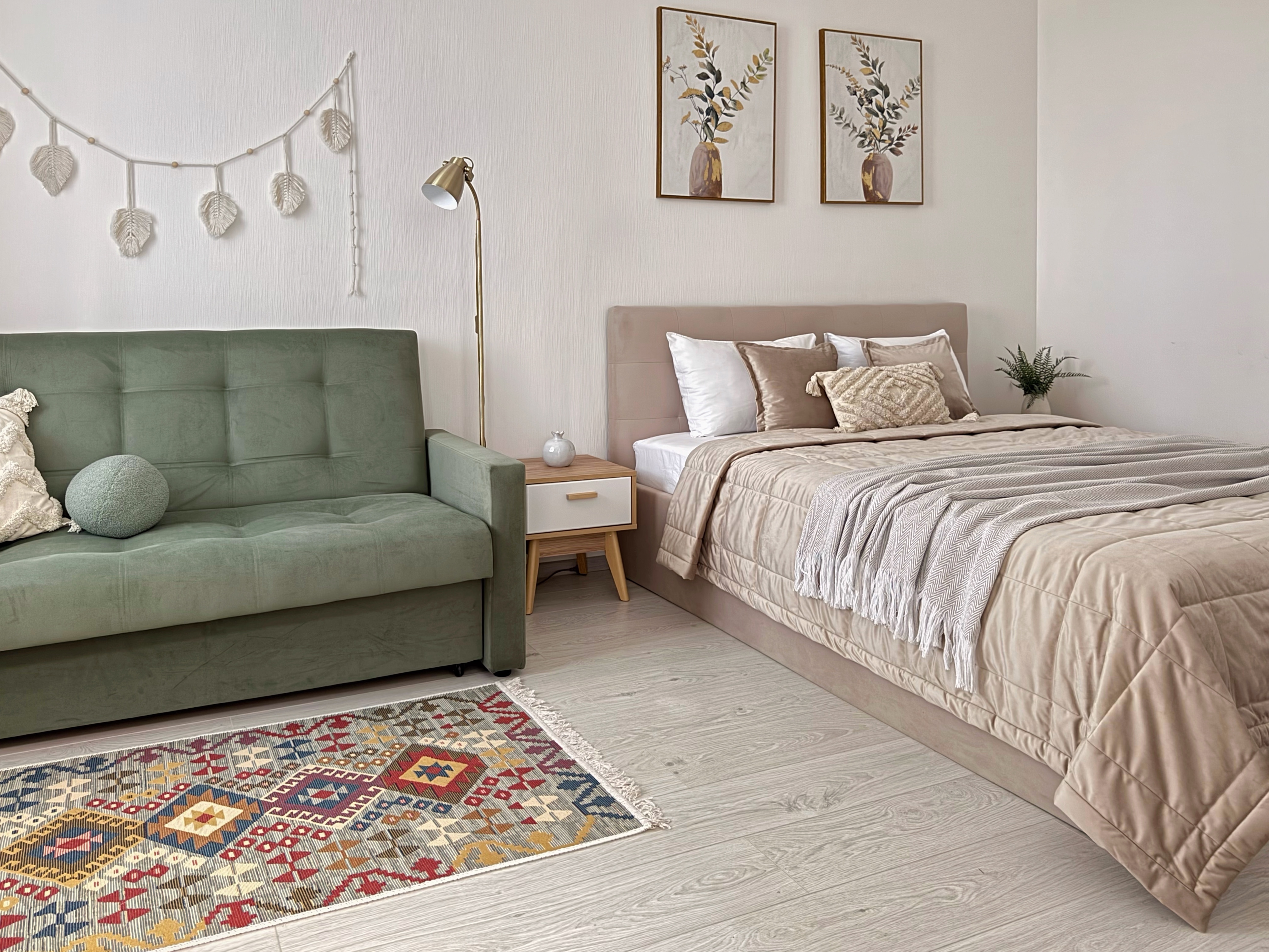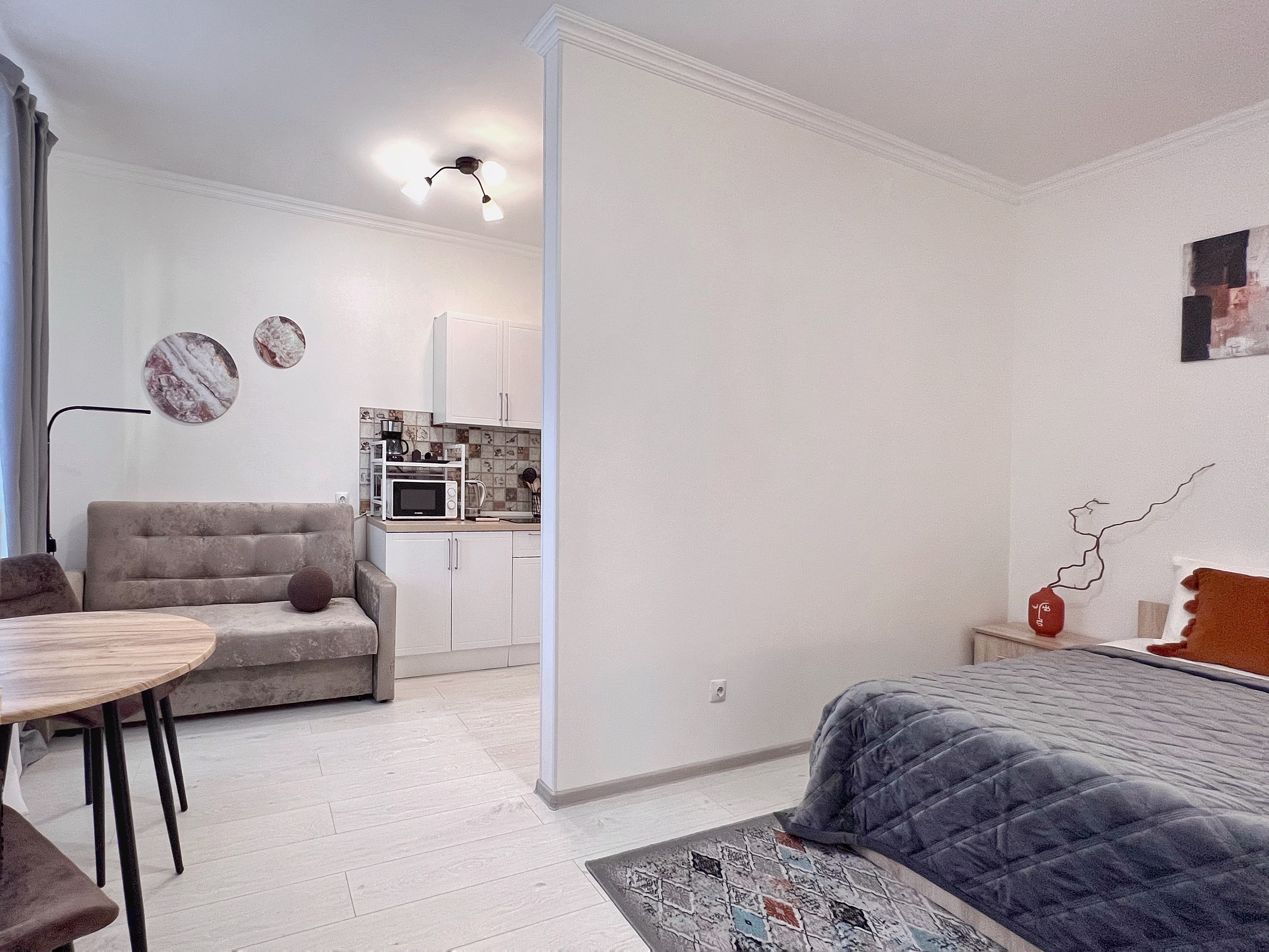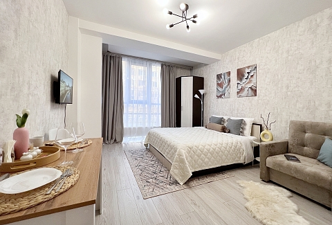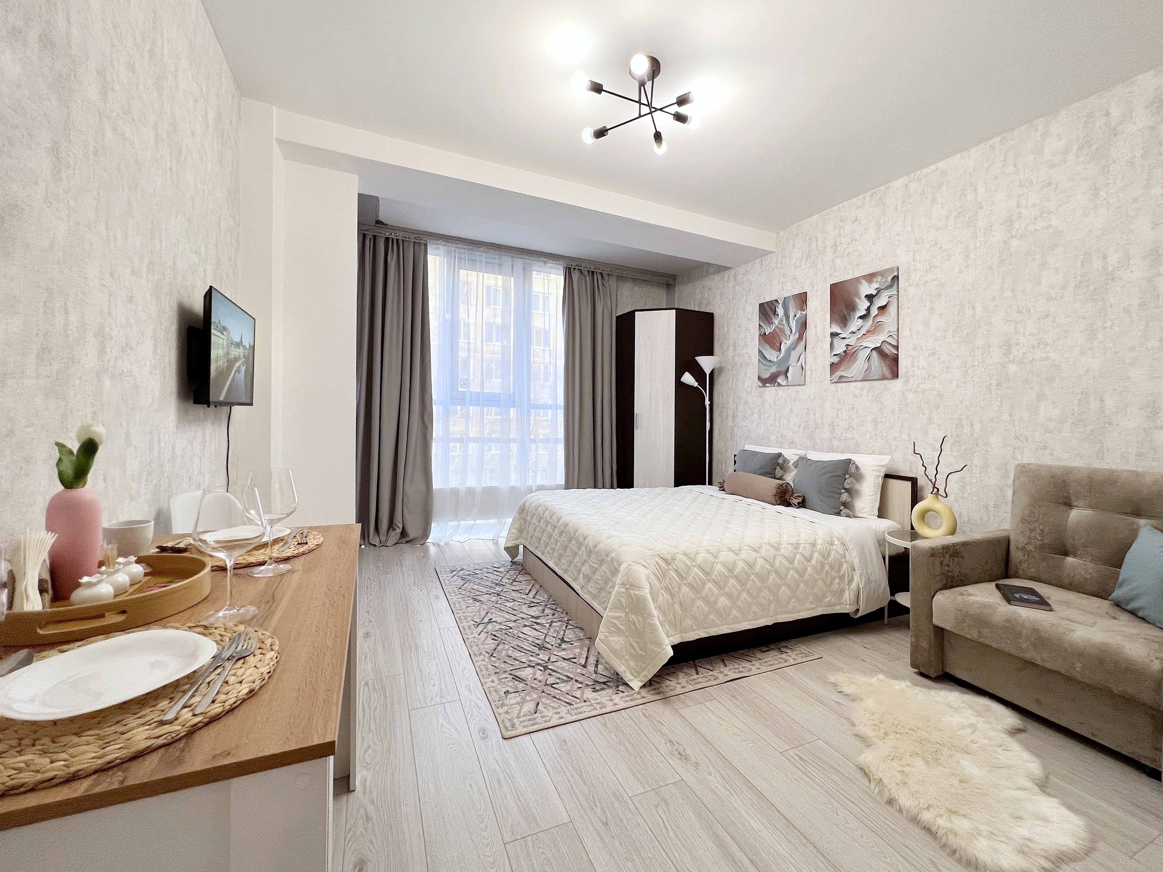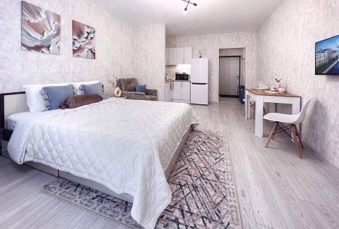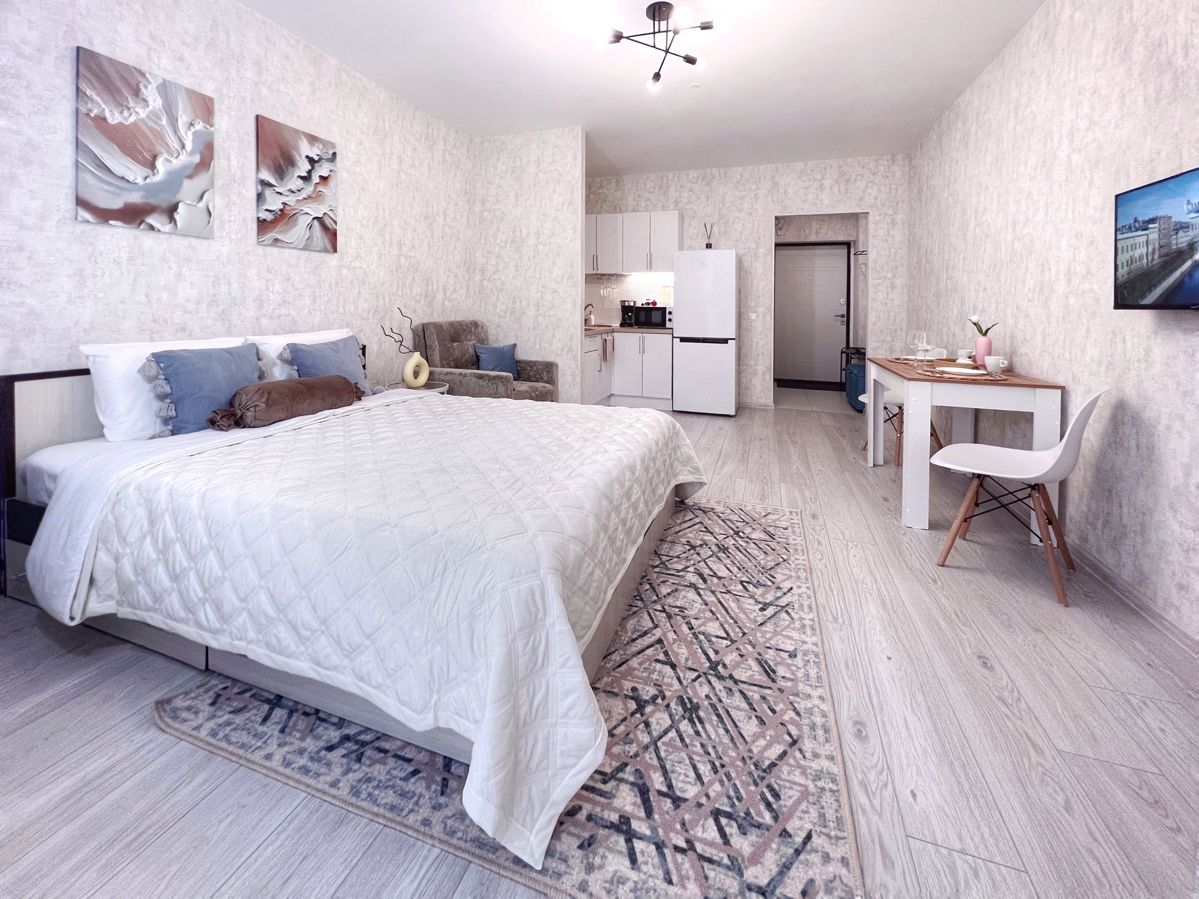 Апартаменты расположены в живописном районе нового жилого комплекса «Лондон парк», недалеко от станции метро «Проспект Просвещения». Здесь удобно добираться пешком до всех необходимых объектов инфраструктуры: поблизости находятся магазины, аптеки, круглосуточный фитнес-центр с бассейном и аквапарк в торговом центре «Родео Драйв».Интерьер апартаментов выполнен в современном стиле, здесь царит уют и чистота благодаря регулярной уборке профессиональными средствами после каждого гостя. Просторная двуспальная кровать и удобный диван-кровать обеспечат отдых каждому жильцу.