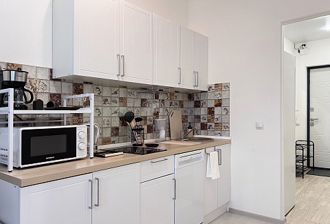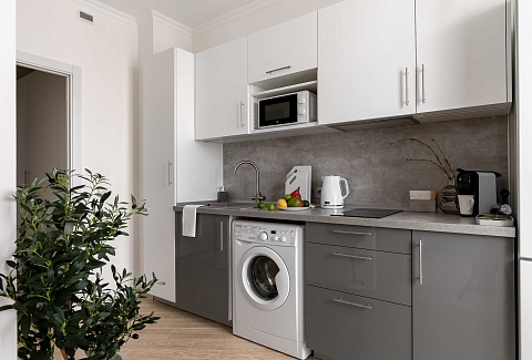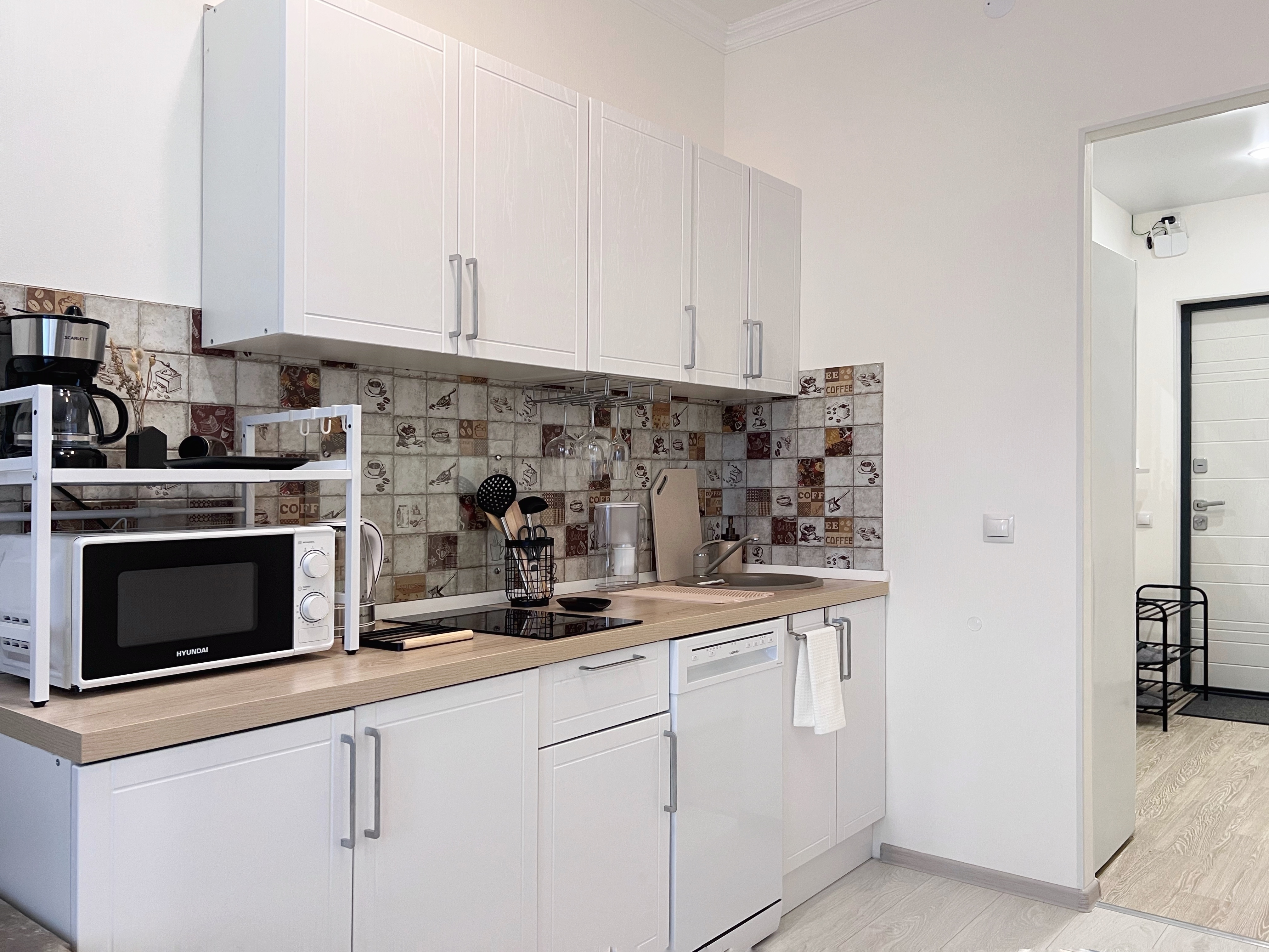 Кухня оборудована современной бытовой техникой: холодильником, плитой, стиральной машиной, микроволновой печью и электрическим чайником. Все необходимые принадлежности для приготовления пищи и ухода за одеждой также предоставлены.Для удобства гостей предусмотрены бесплатные аксессуары: чай, кофе, сахар, подсолнечное масло в холодильнике, предметы личной гигиены и свежие полотенца. Доступ в интернет осуществляется посредством скоростного Wi-Fi соединения, а просмотр любимых передач возможен на спутниковом телевидении.Приятным дополнением станет персональный гид по городу, разработанный специально для вас командой апартаментов «GRANADA». Это ваш идеальный выбор для комфортного пребывания в Санкт-Петербурге, будь то туристический визит, деловой выезд или романтическое путешествие.