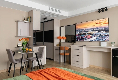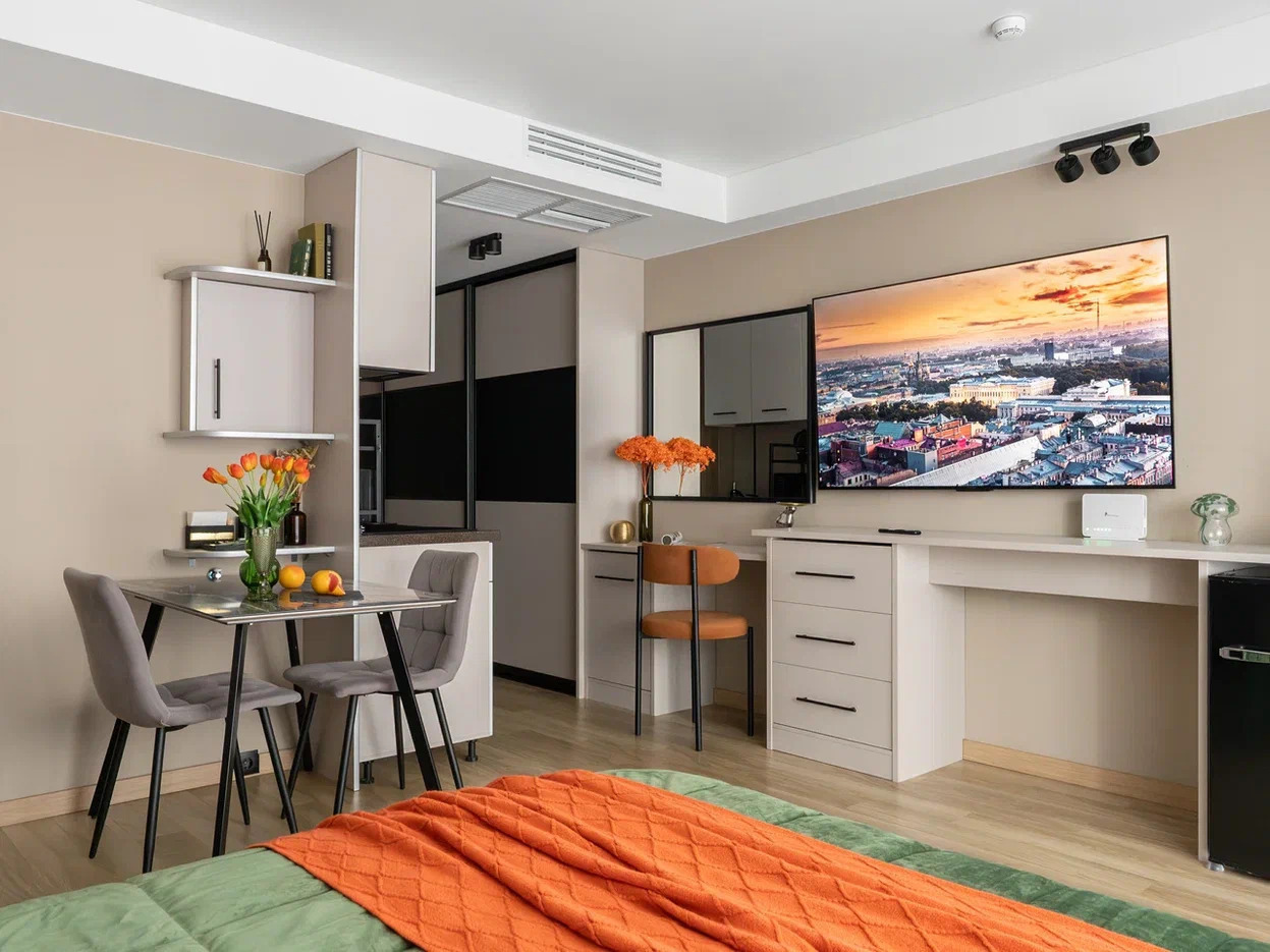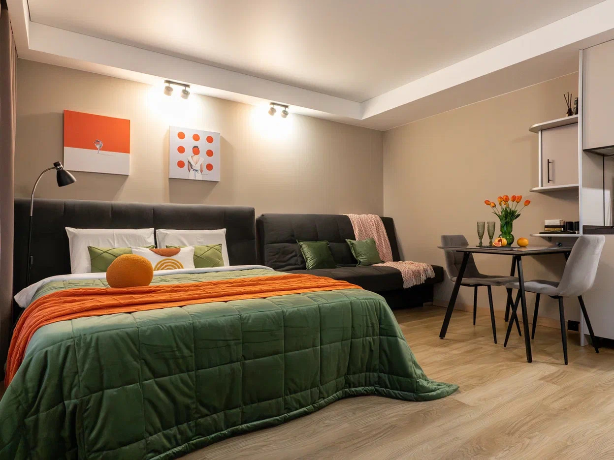 Апартаменты «GRANADA» расположены в современном жилом комплексе Well недалеко от станций метро «Фрунзенская» и «Балтийская», обеспечивающих удобный доступ к центральным районам Санкт-Петербурга. Здесь созданы комфортные условия для вашего пребывания благодаря близкому расположению набережной Обводного канала, торгово-развлекательного комплекса VOKZAL 1853 и Московского проспекта, ведущего к аэропортам и ключевым туристическим объектам.Вас ждёт просторный интерьер с современным ремонтом и стильной обстановкой. Внутри оборудована удобная зона отдыха с двуспальной кроватью и диваном-кроватью, позволяющими комфортно разместиться нескольким гостям одновременно.