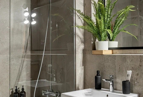 Санузел: с ванной, тапочки, туалетные принадлежности, фен