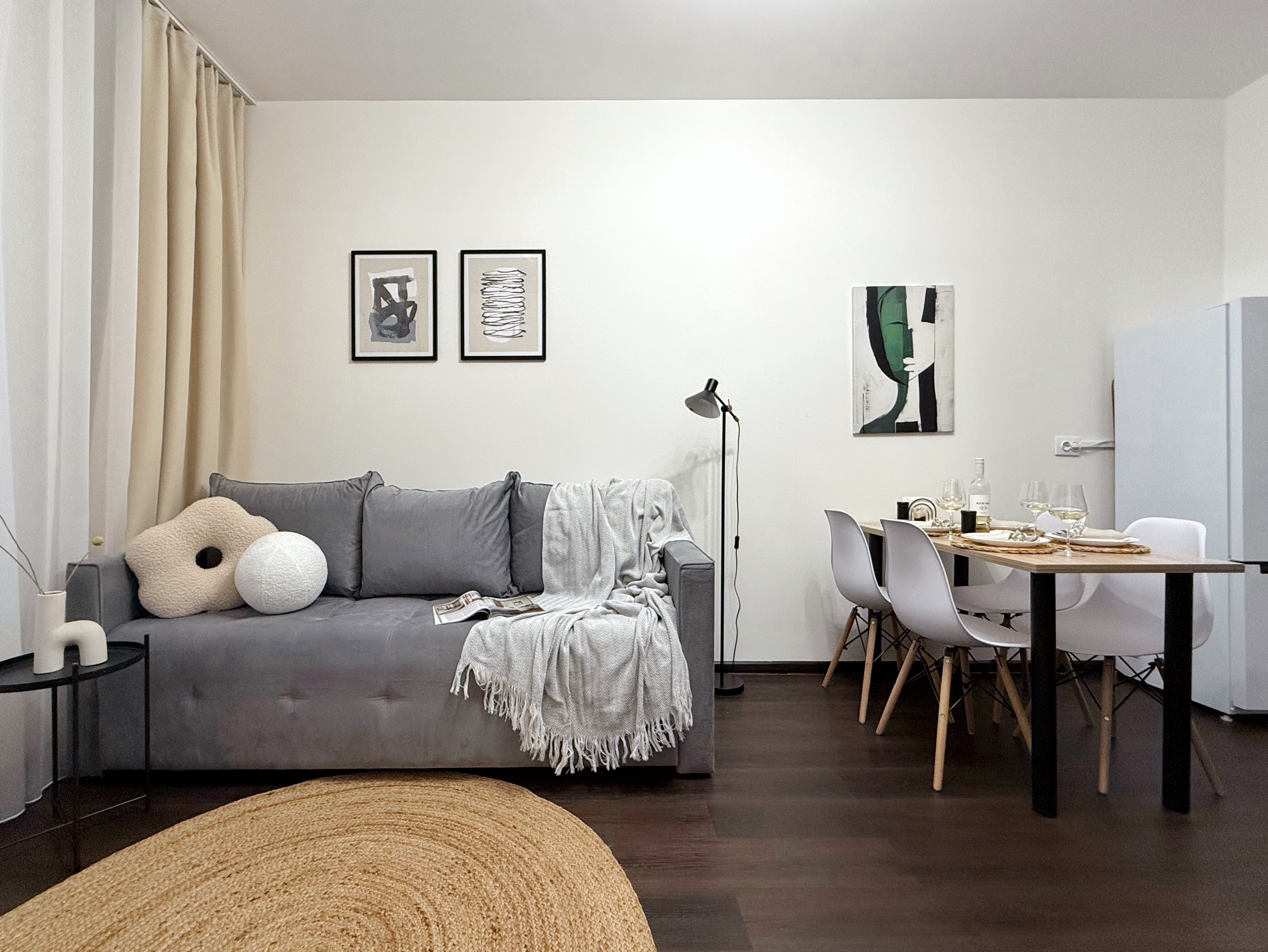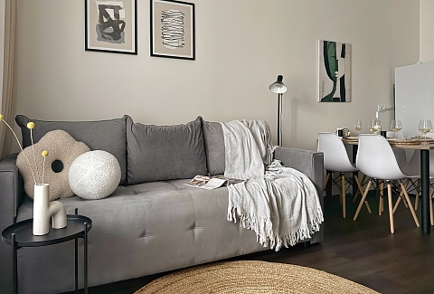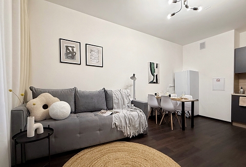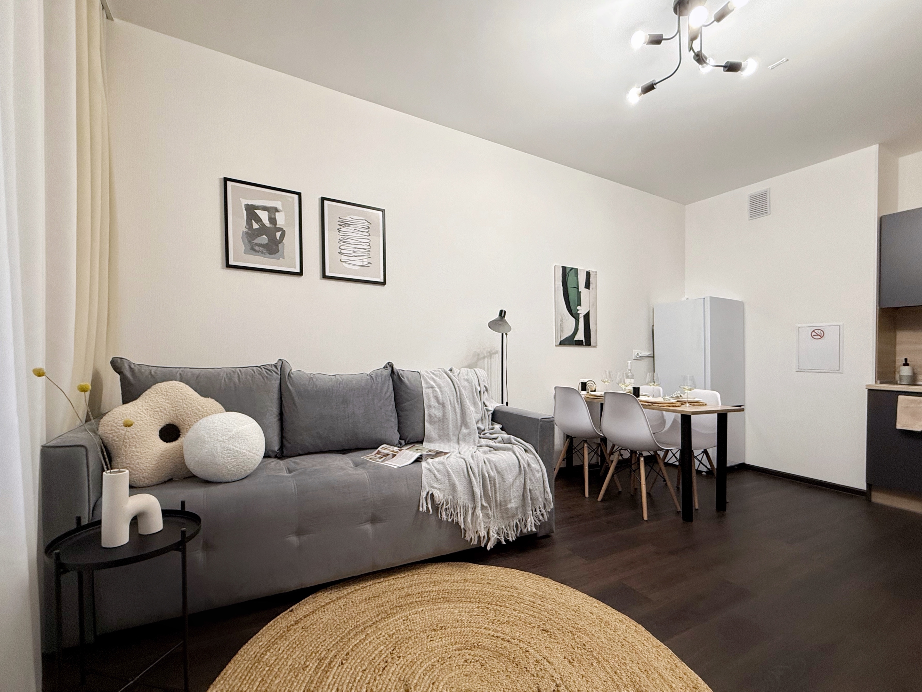 Апартаменты расположены в тихом дворе нового жилого комплекса «Автограф», недалеко от оживленного Лиговского проспекта. Этот уютный уголок идеально подойдет туристам, командированным сотрудникам и влюбленным парам, стремящимся отдохнуть от городской суеты. Из окон открывается живописный вид на зеленые насаждения двора, а близость станций метро «Обводный канал», «Волковская» и «Московские ворота» позволяет быстро добраться до центра города или совершить короткую прогулку пешком до ближайшего крупного торгового центра «Лигов».Для удобства гостей предусмотрены бесплатная общественная парковка возле дома и продуманная система самостоятельного заселения, позволяющая избежать ожидания и зависимости от графика встречающих лиц.