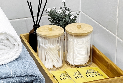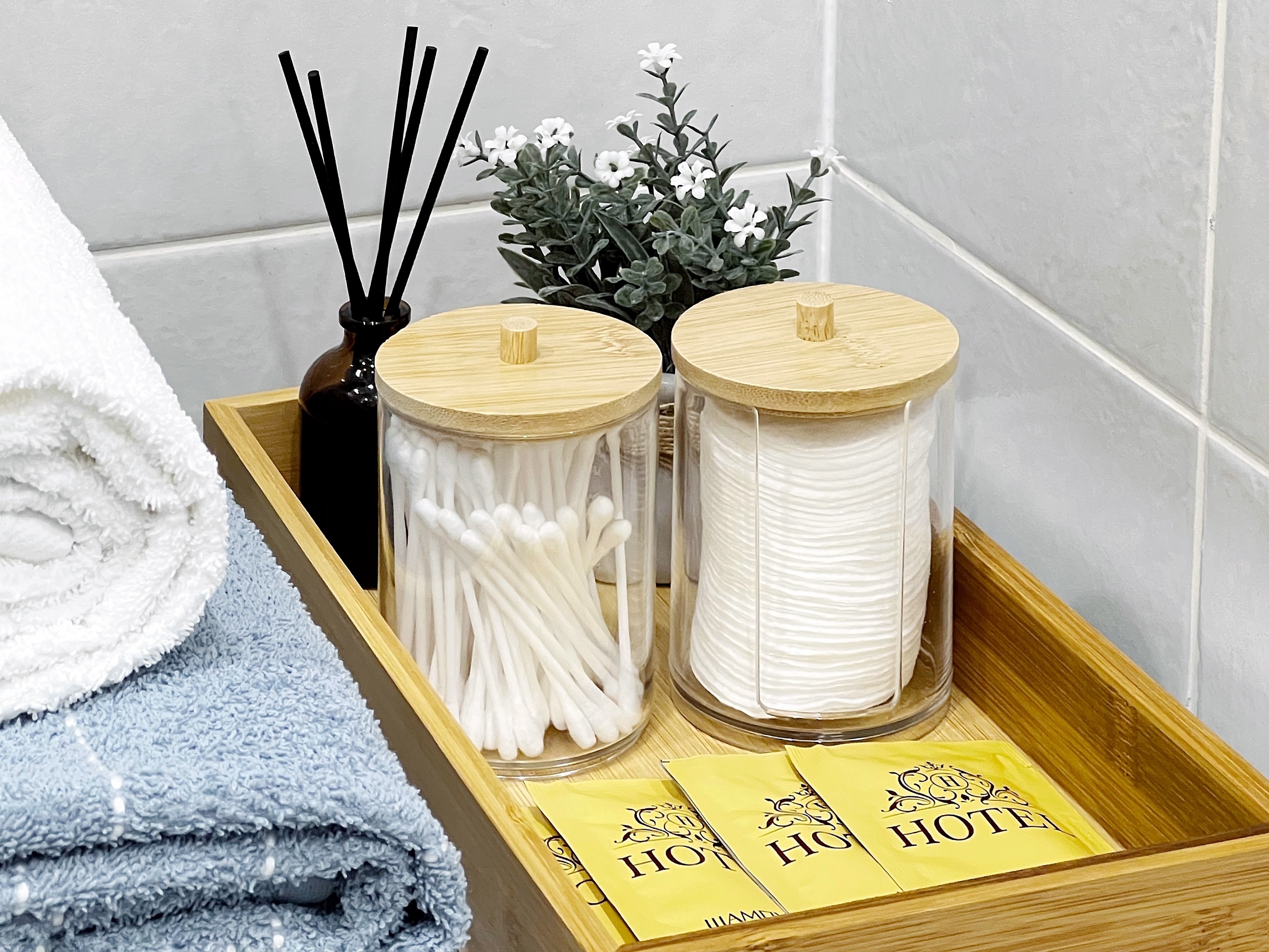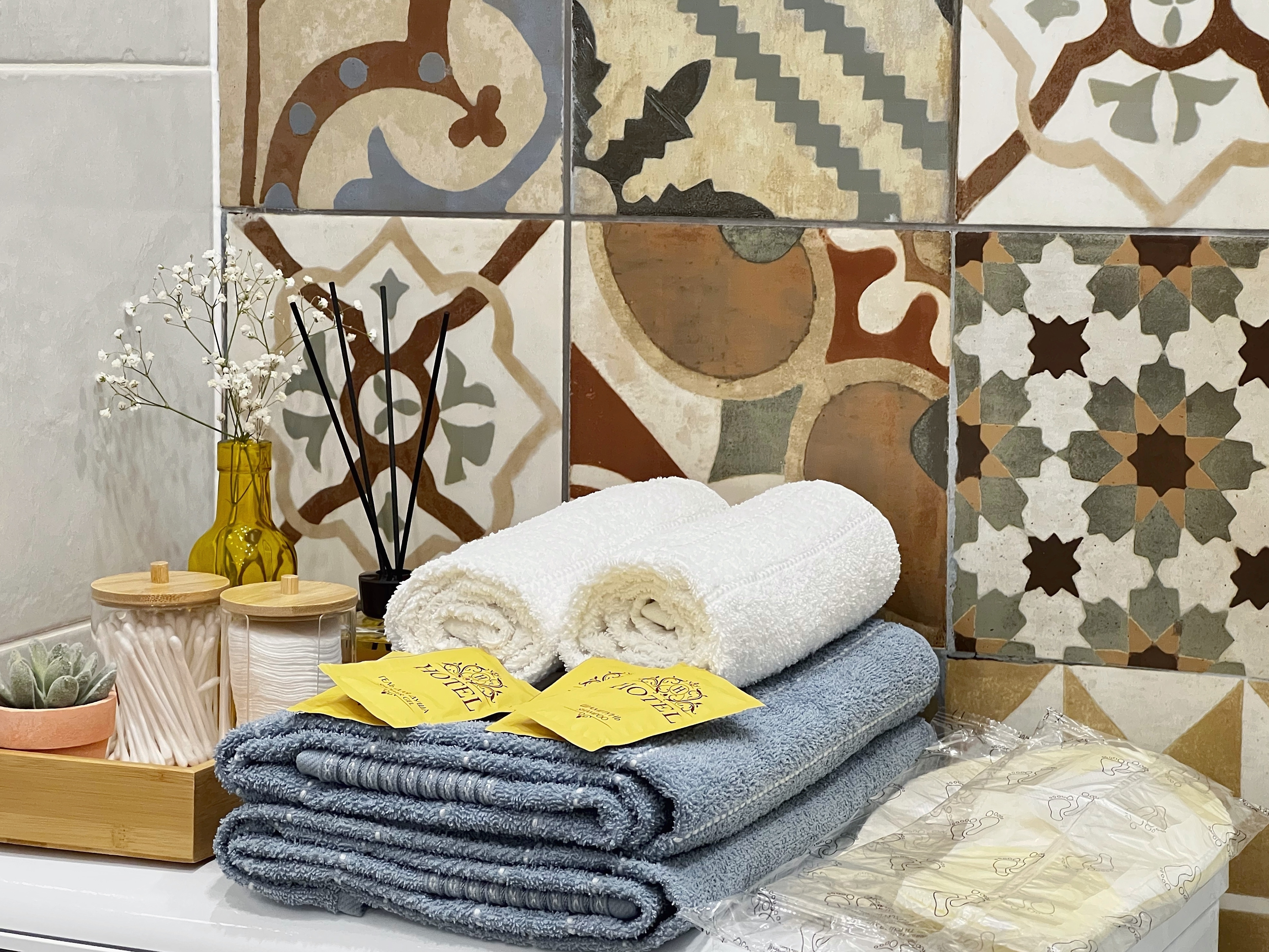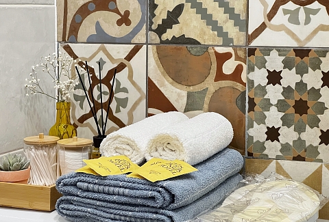 Санузел: с душевой кабиной, тапочки, туалетные принадлежности, фен