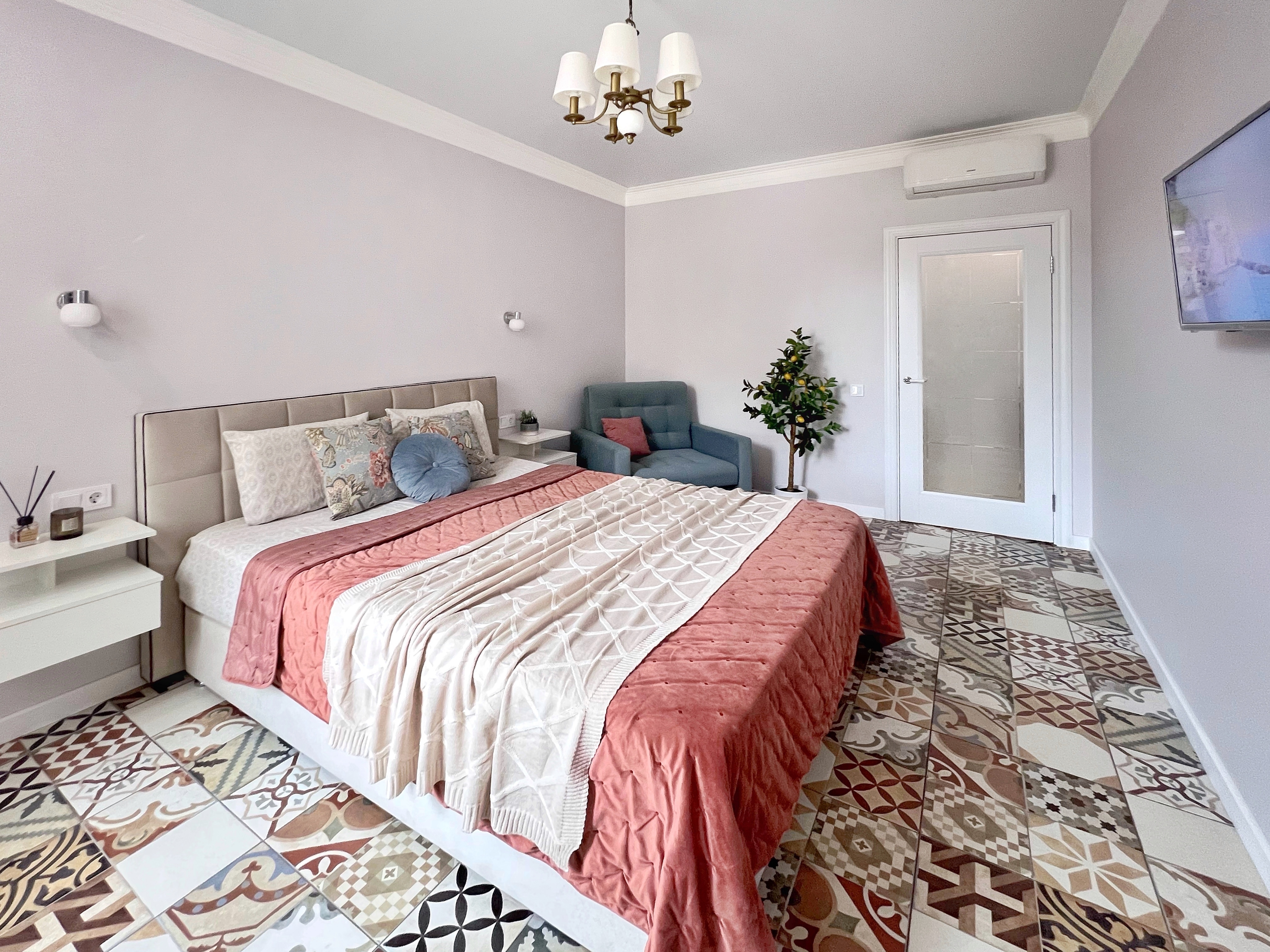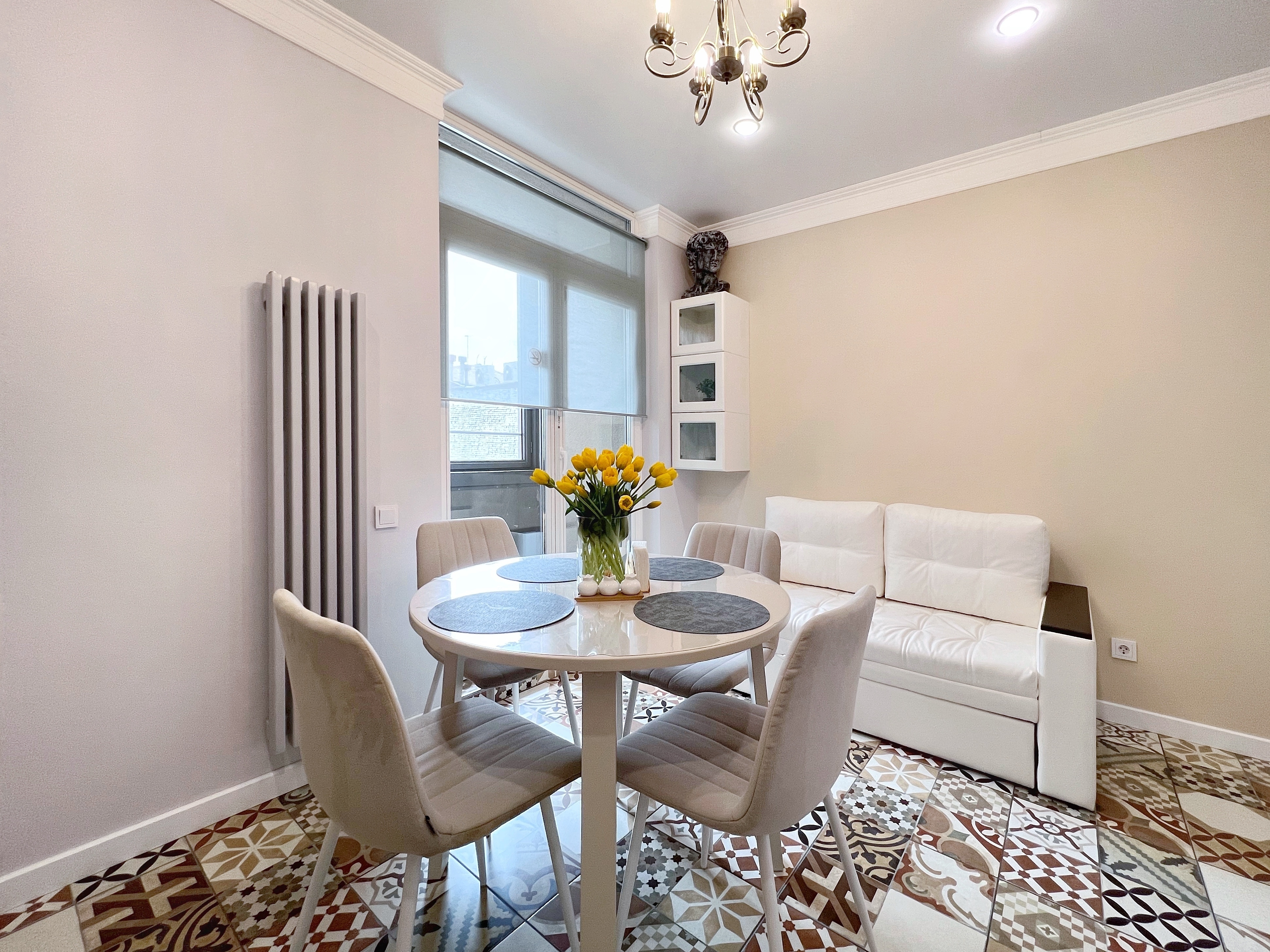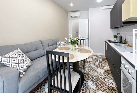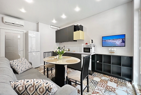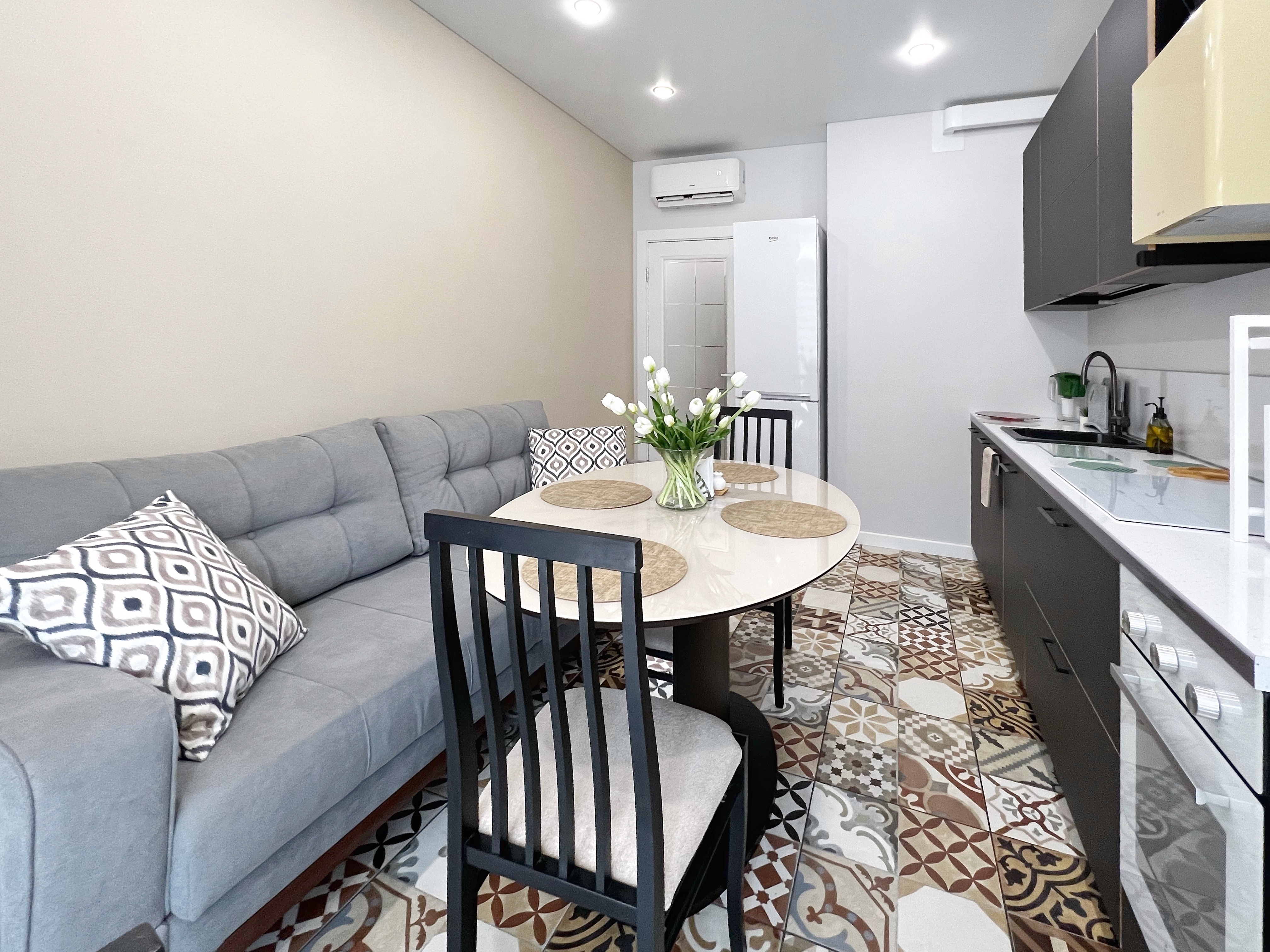 Недалеко находятся главные транспортные узлы города: станция метро «Площадь Восстания», железнодорожный вокзал и площадь Александра Невского. Благодаря такому удачному размещению гости получают легкий доступ к любому району города и ближайшим достопримечательностям.Просторные и светлые апартаменты выполнены в изысканном стиле, идеально подходящие как для романтичного отпуска, так и деловых поездок. Интерьер включает двуспальную кровать и дополнительный диван-кровать, позволяющий комфортно разместиться группе из четырех человек. К услугам гостей имеется вся необходимая бытовая техника: телевизор с возможностью подключения к кабельному телевидению, современные системы кондиционирования воздуха, просторная кухня с качественным оборудованием — холодильник, электроплита, микроволновая печь, посудомоечная машина и прочие удобства. Санузел оснащен полноценной системой горячего водоснабжения и высококачественными аксессуарами для личного пользования.Также предусмотрено всё для приятного досуга и поддержания быта: беспроводной высокоскоростной интернет, качественные постельные принадлежности и полотенца, полная уборка после каждого гостя, предмет гигиены первой необходимости и даже вкусный стартовый набор из чая, кофе и сахара, чтобы начать утро приятно и расслабленно. Для малышей возможен заказ детского стула для кормления и дополнительного спального места.Каждый гость почувствует искреннюю заботу и уют домашней обстановки в сочетании с европейским уровнем сервиса и неповторимой атмосферой старинного города.